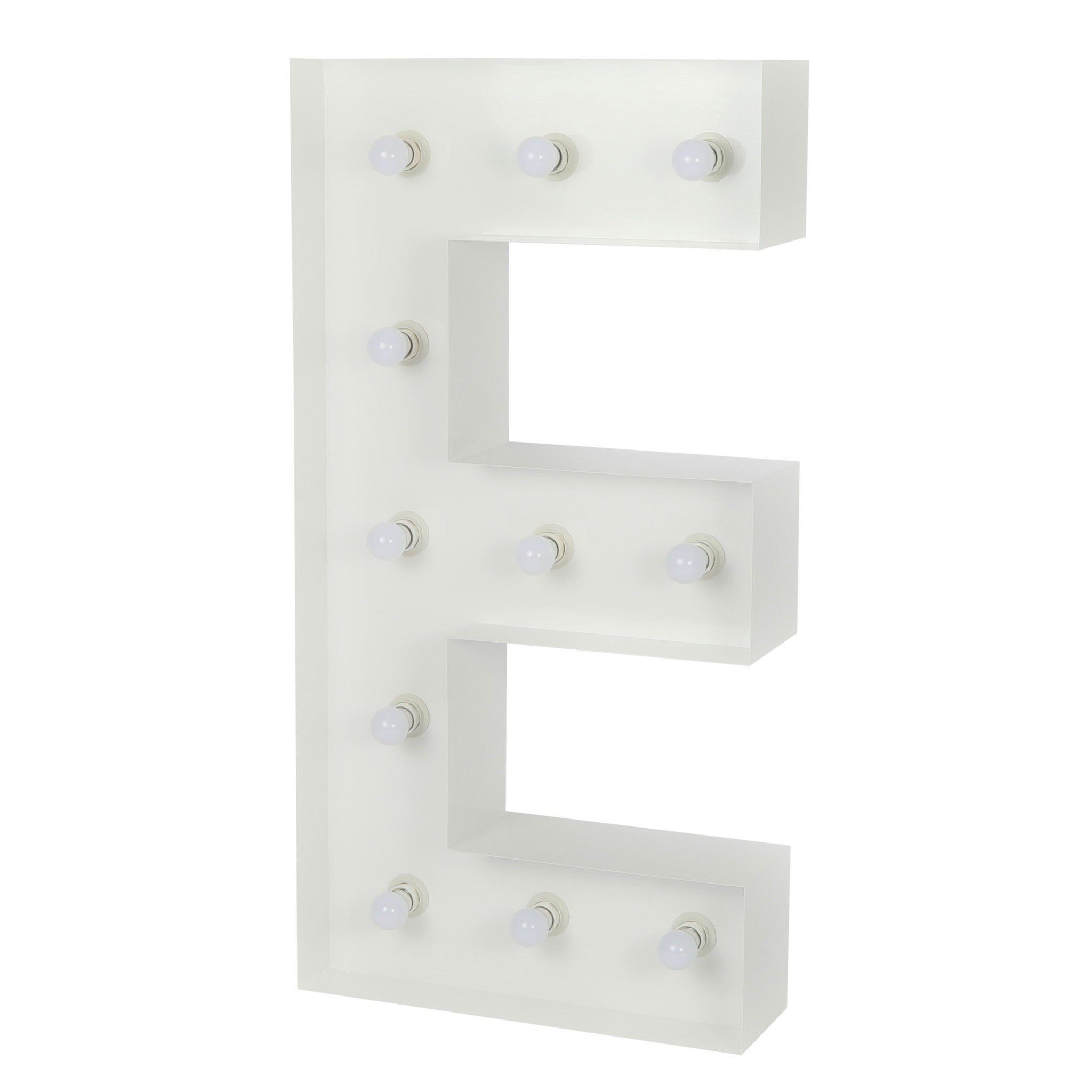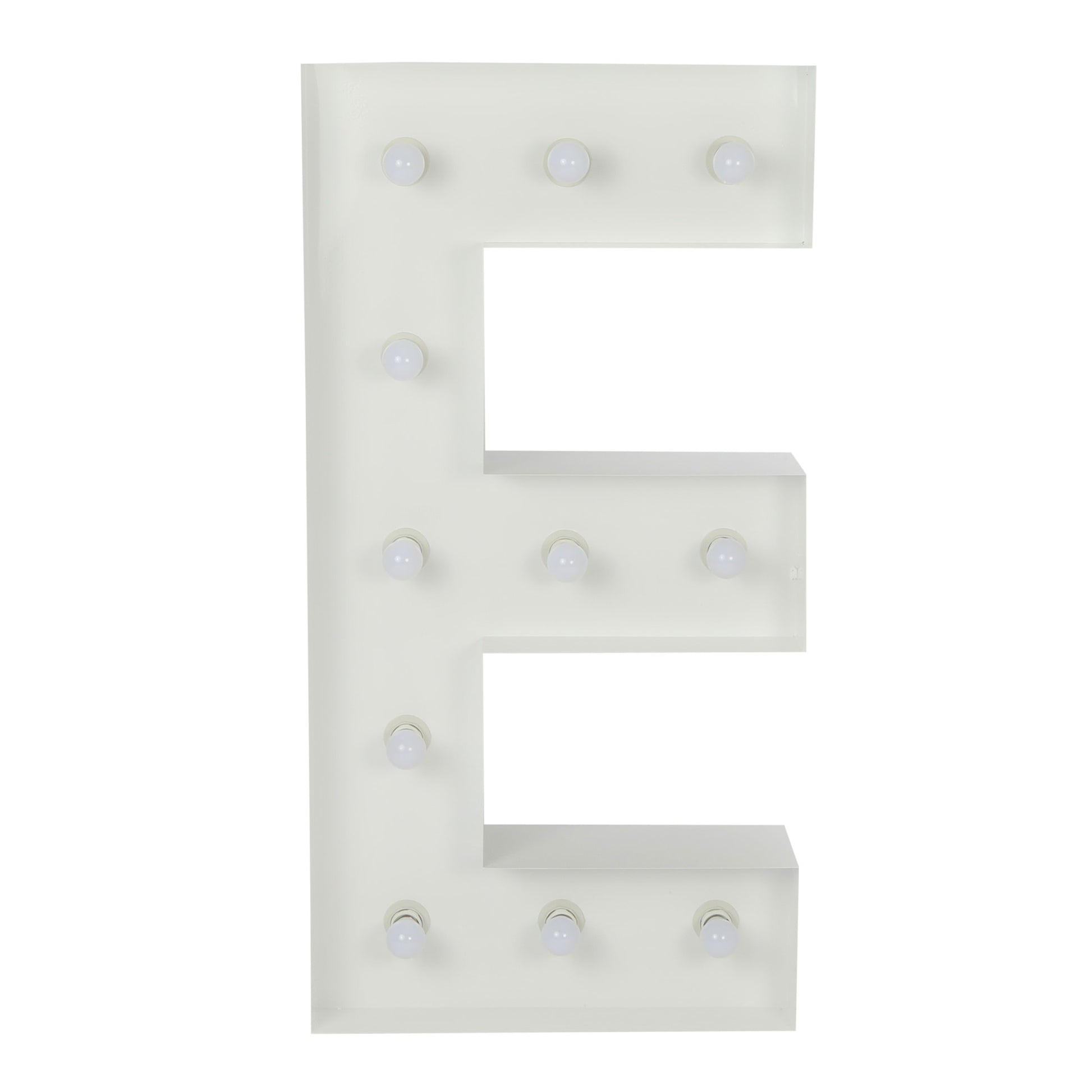Make every special occasion an unforgettable moment with the Large 4ft Tall LED Marquee Letter - E! Made of white galvanized metal, this marquee letter will add a warm ambiance to any event space. Get creative and choose from any combination of marquee letters, numbers, or symbols for your own custom party message. The bright LED bulbs will illuminate your messages and create a warm or radiant atmosphere.