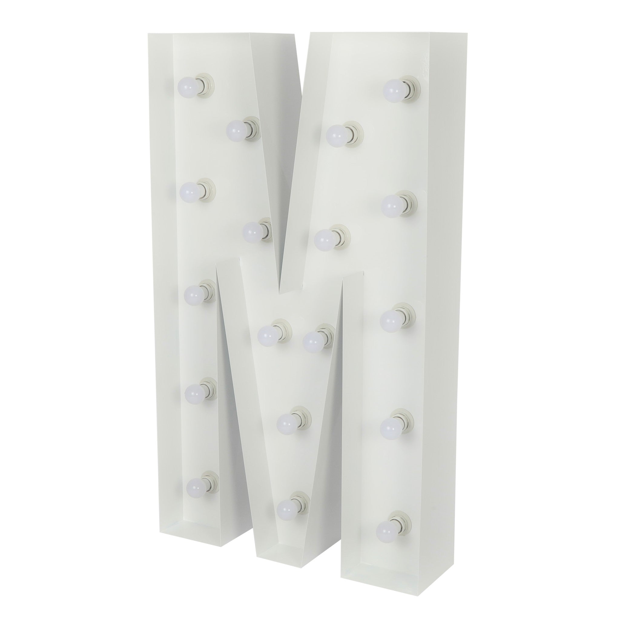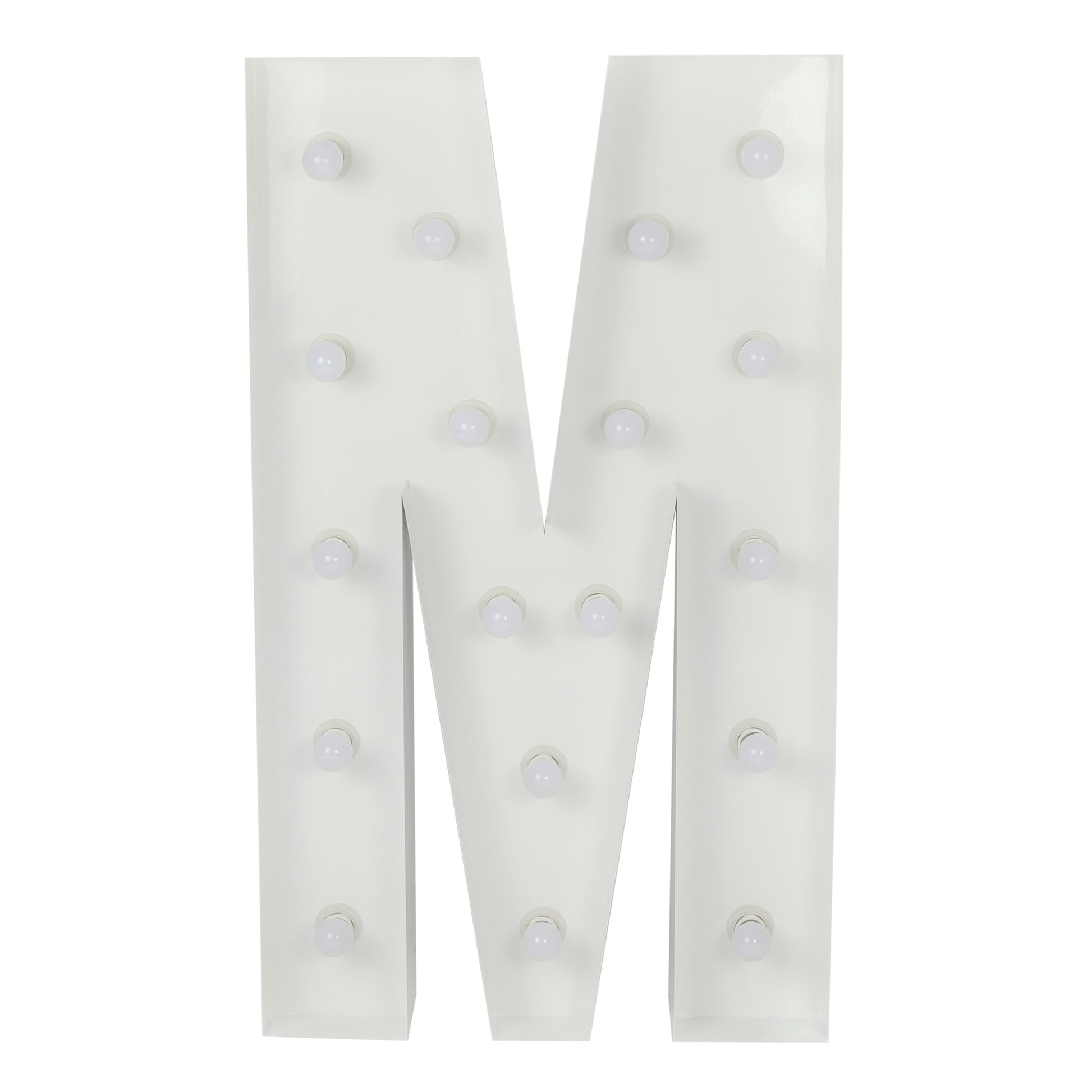 Our large 4ft Tall LED Marquee Letter - M is a fun and easy way to add your personal touch to your event decor. This standalone marquee letter is made of white galvanized metal and LED lights, making it a great addition to any event space. You can choose from different marquee letters, numbers, or symbols to create any personalized message. The vibrant LED bulbs will light up your message, creating a cozy or vibrant ambiance.