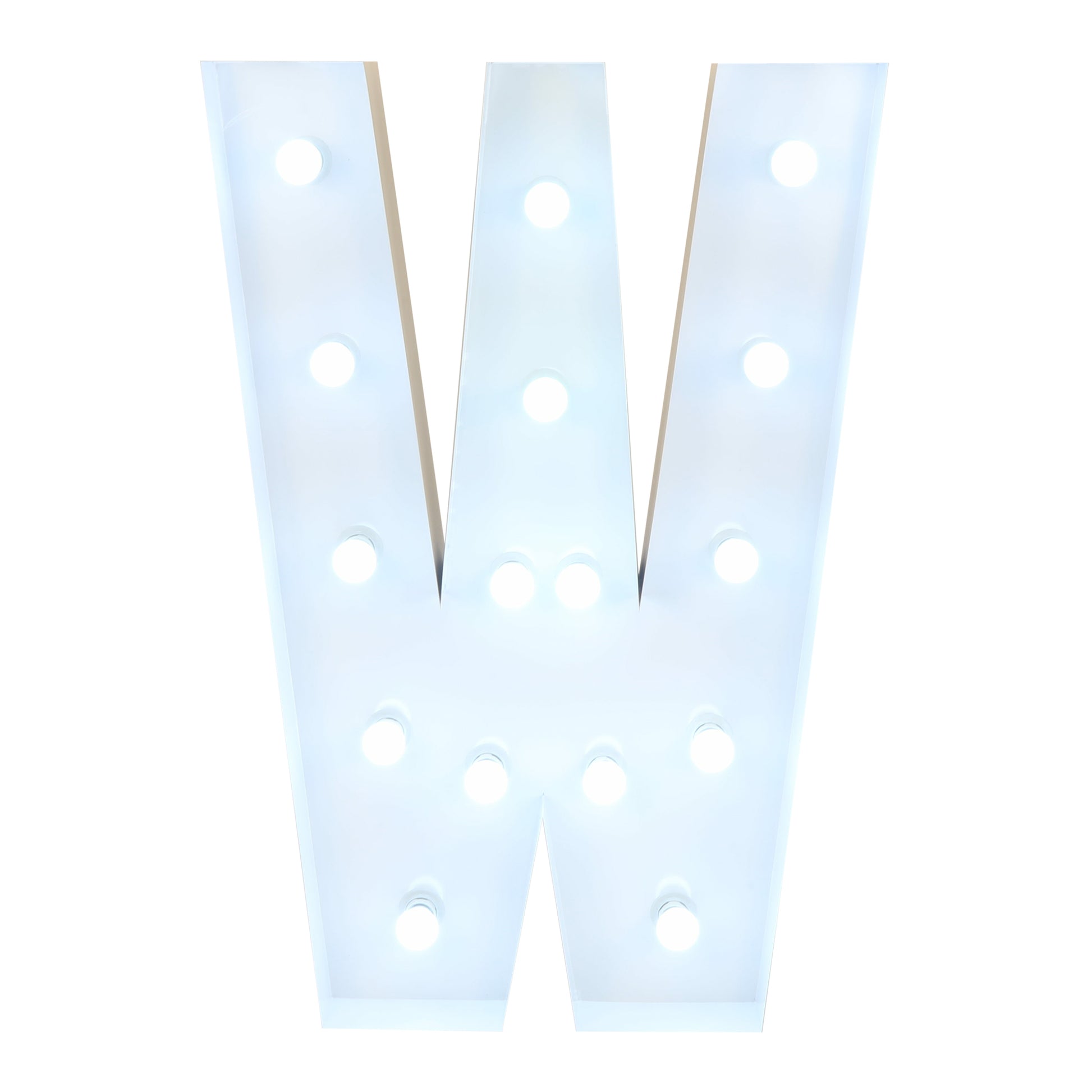Make every occasion an unforgettable moment with our Large 4ft Tall LED Marquee Letter - W! Crafted of white galvanized metal, this freestanding marquee letter will light up any event space. Get creative and choose from any combination of marquee letters, numbers, or symbols for your own custom party message. The bright LED bulbs will illuminate your messages and create a warm or radiant atmosphere.