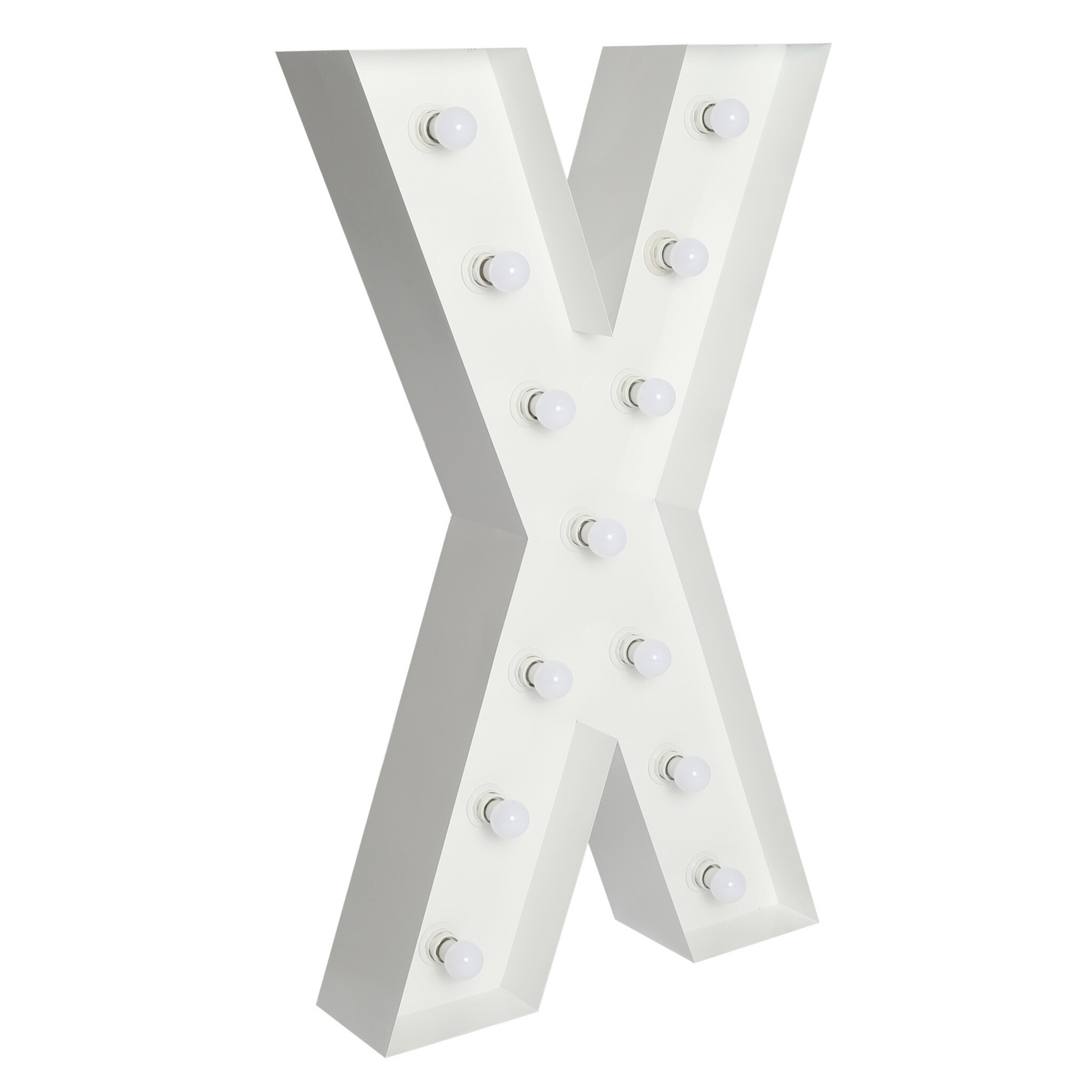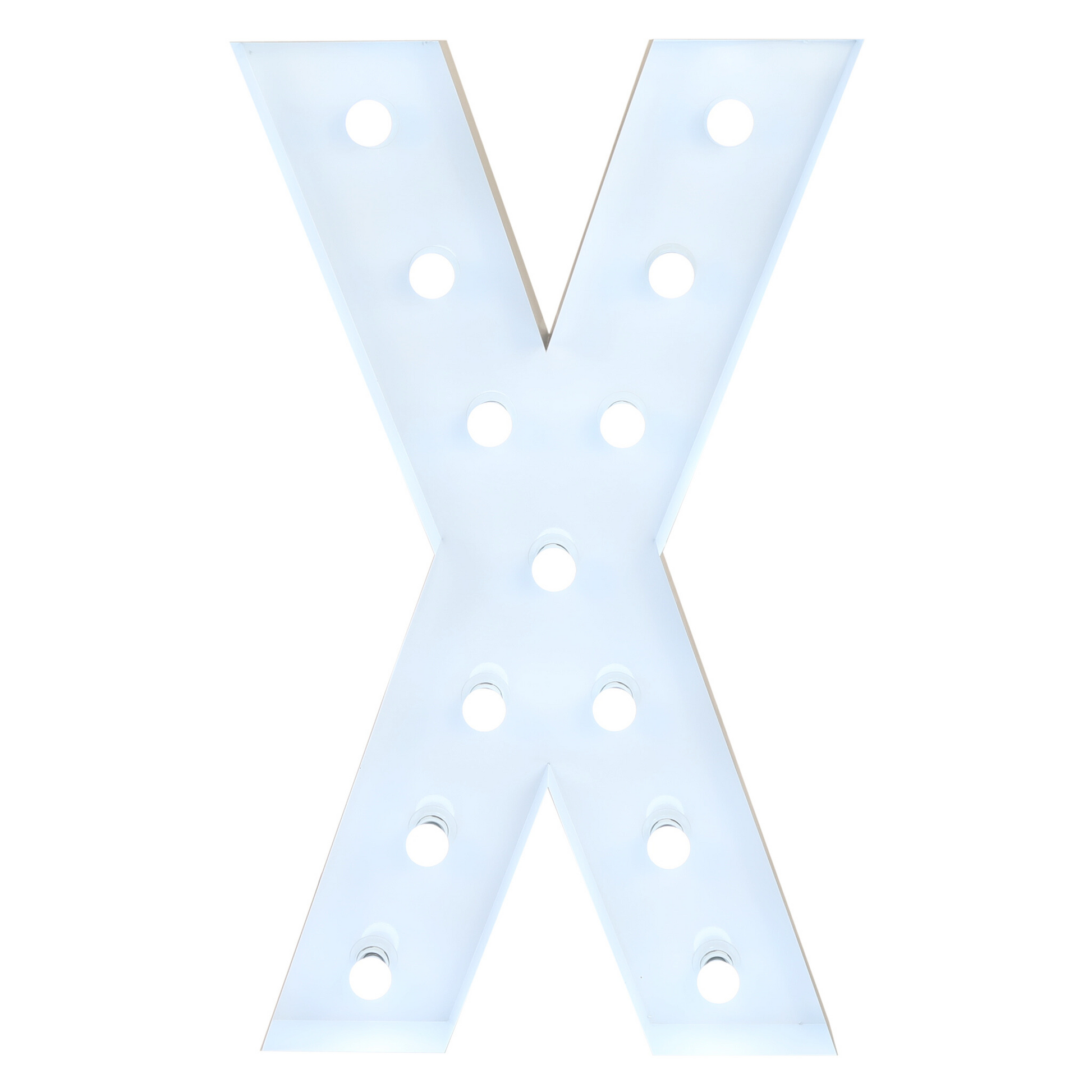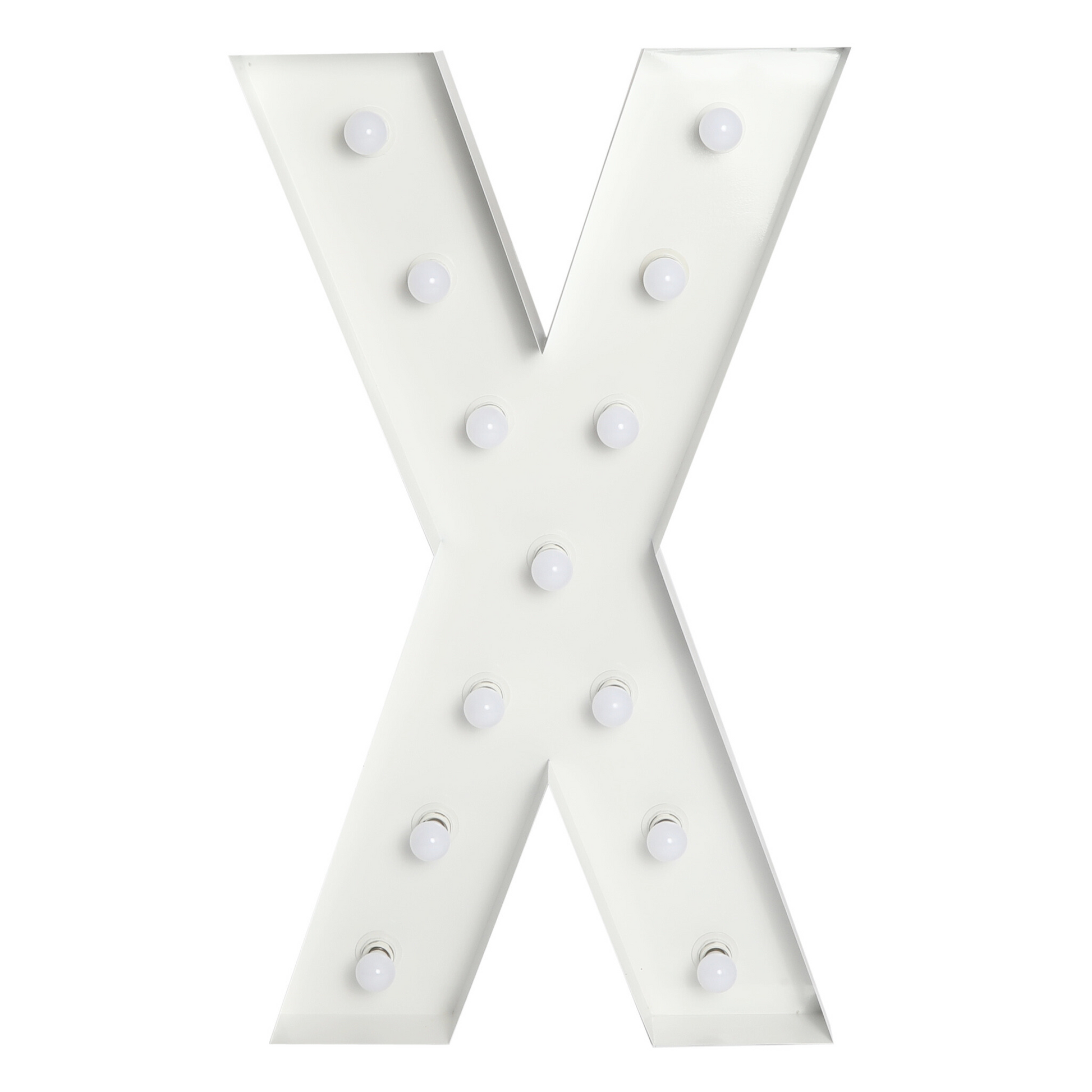 Make every occasion an unforgettable moment with our Large 4ft Tall LED Marquee Letter - X! Crafted of white galvanized metal, this freestanding marquee letter will light up any event space. Get creative and choose from any combination of marquee letters, numbers, or symbols for your own custom party message. The bright LED bulbs will illuminate your messages and create a warm or radiant atmosphere.