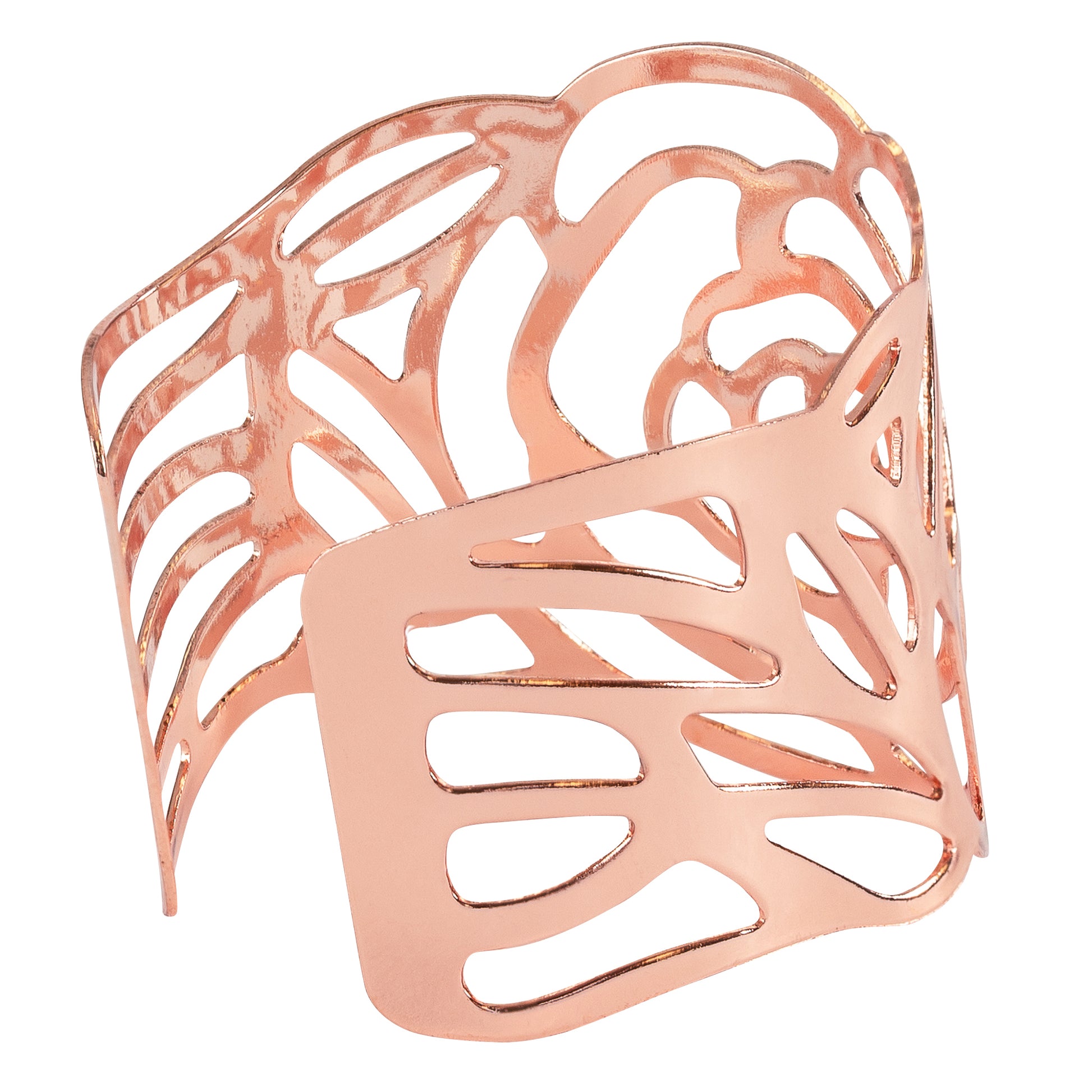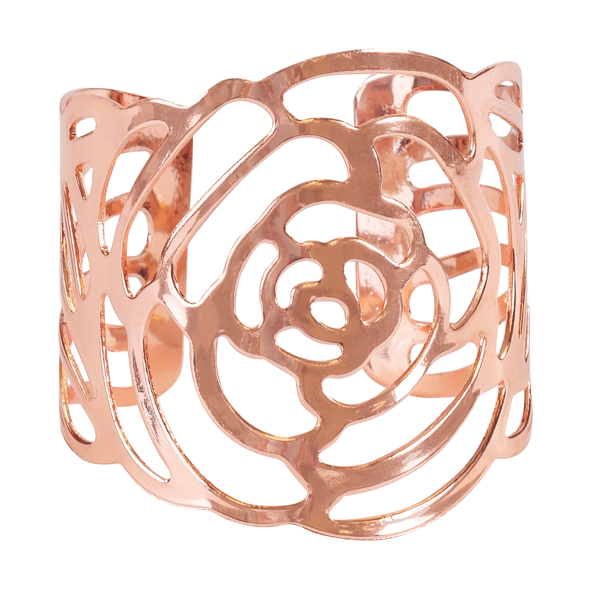 Are you looking for a unique and timeless way to elevate your dining ensemble? Our Laser Cut Rose Metal Napkin Ring - Blush/Rose Gold creates the perfect look for each place setting and your table. The gentle sheen of the metal catches the light in such a way that illustrates a sophisticated and dressy presentation ideal for holding white, solid, or patterned fabric napkins. Evocative of elegant femininity and grace, the laser cut rose metal design offers a striking counterpart to your paper or linen napkins in an artful ornamentation that takes on a sophisticated simplicity that is intriguingly distinctive.