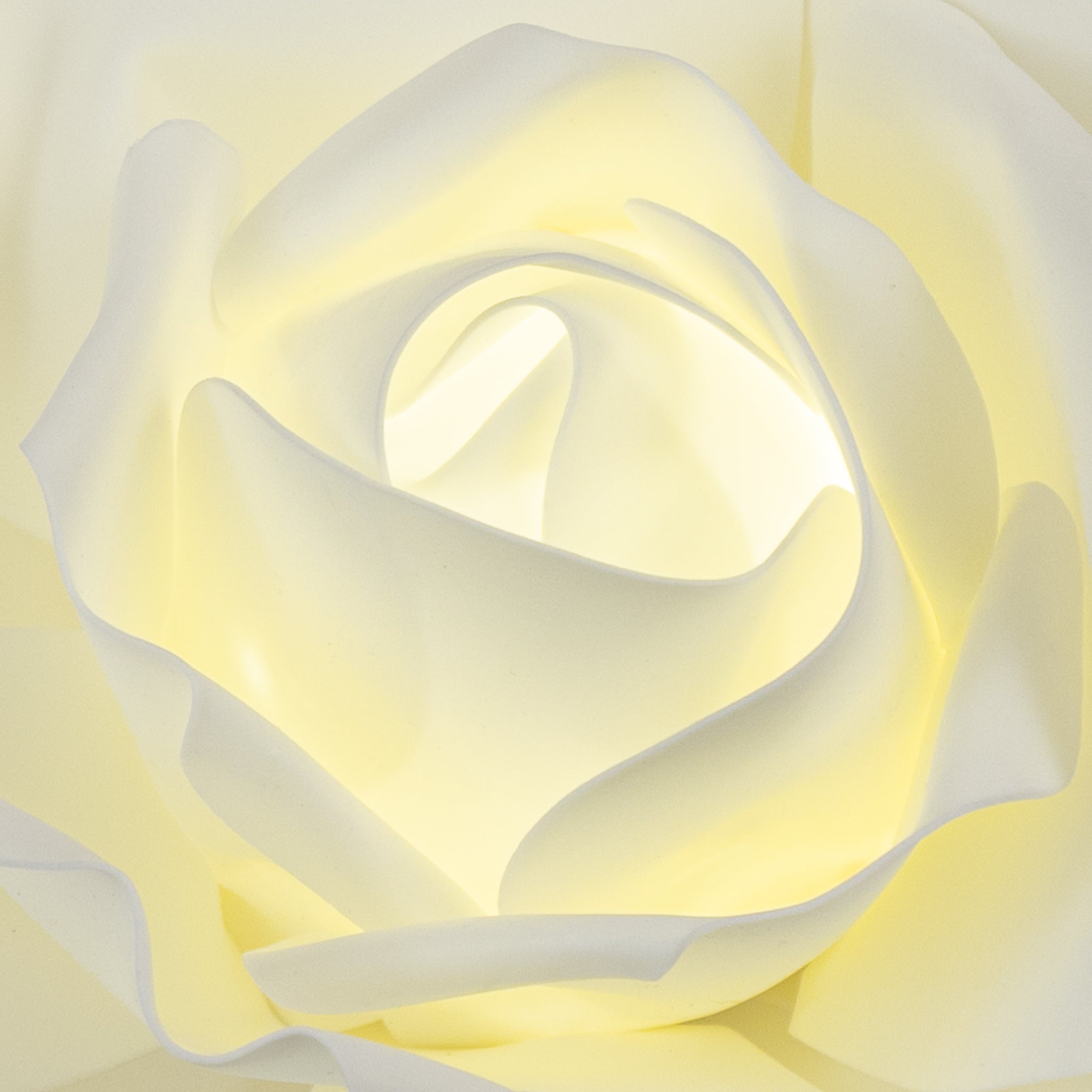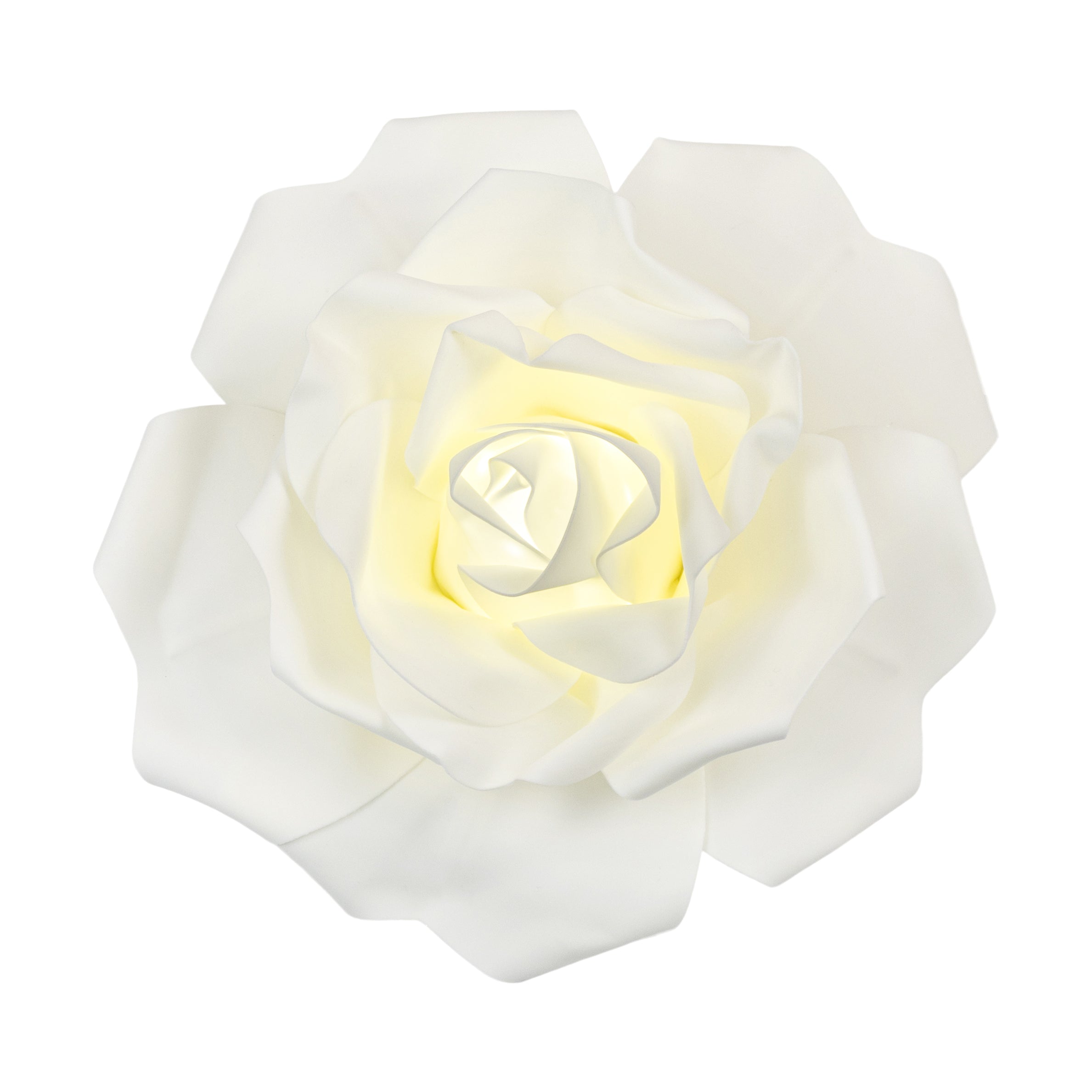 Create a beautifully illuminated flower backdrop with our 3D LED Lighted Large Foam Rose Wall Decor 30 cm - Ivory. This light-up foam flower offers a simple yet elegant design that is ideal for weddings, birthdays, baby showers, nursery decor, DIY crafts, and more. Our large foam roses are made of sturdy, lightweight foam with a soft-to-the-touch texture that replicates the look and feel of silk flowers. The realistic curved petals are set on durable foam backing with two flexible wire hooks for easy setup and installation. This rose is designed with flexible wire in the outer petals as well, making it easy to mold the petals into any shape.