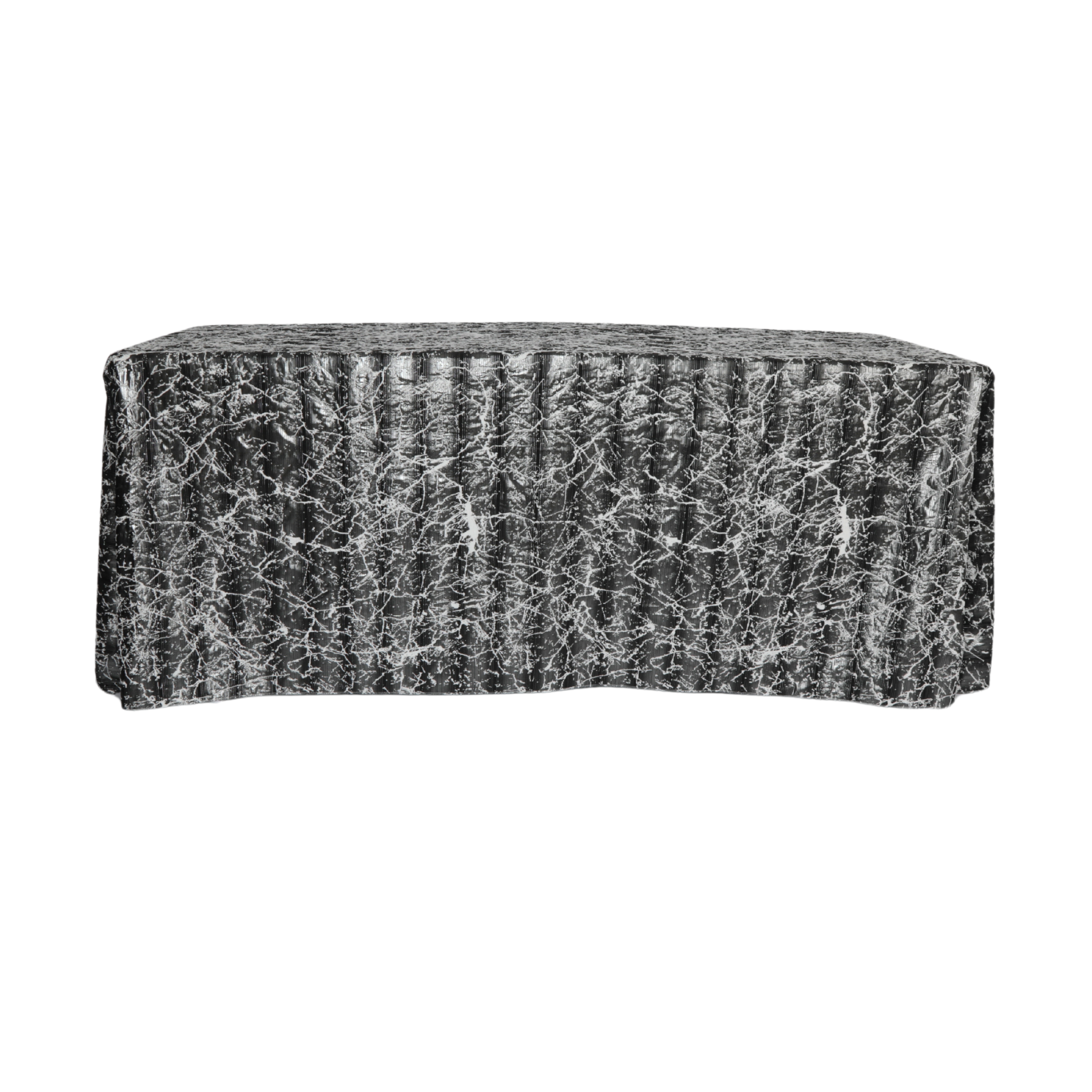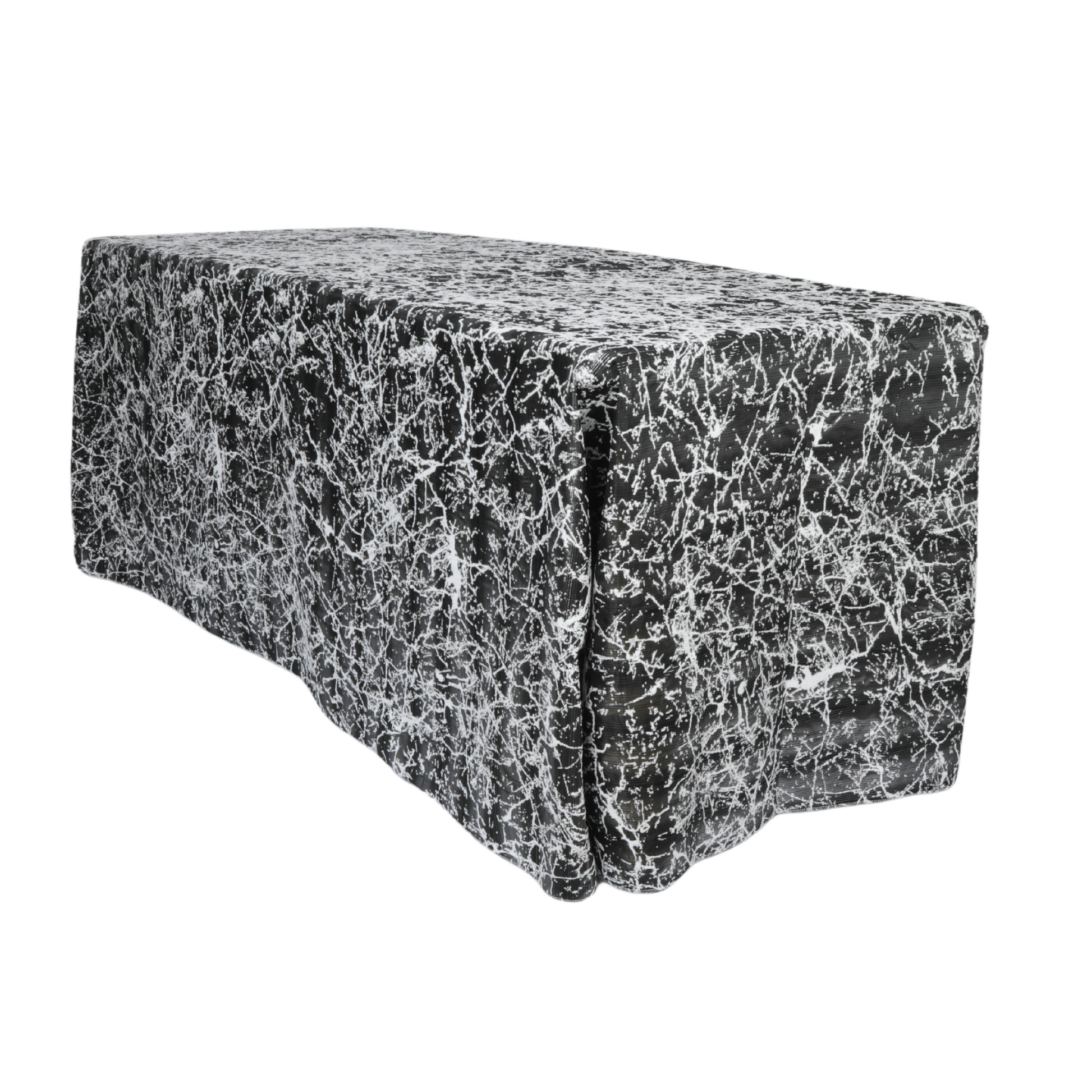 Add decoratives such as black and silver chair bows to tie in with the overall theme as this is a striking complement to the shimmering of this reversible tablecloth. Complete your table setting with modern tableware, table centerpieces, and candelabras that complement well with the black marble reversible tablecloth and you will create a stunning and memorable event decoration.