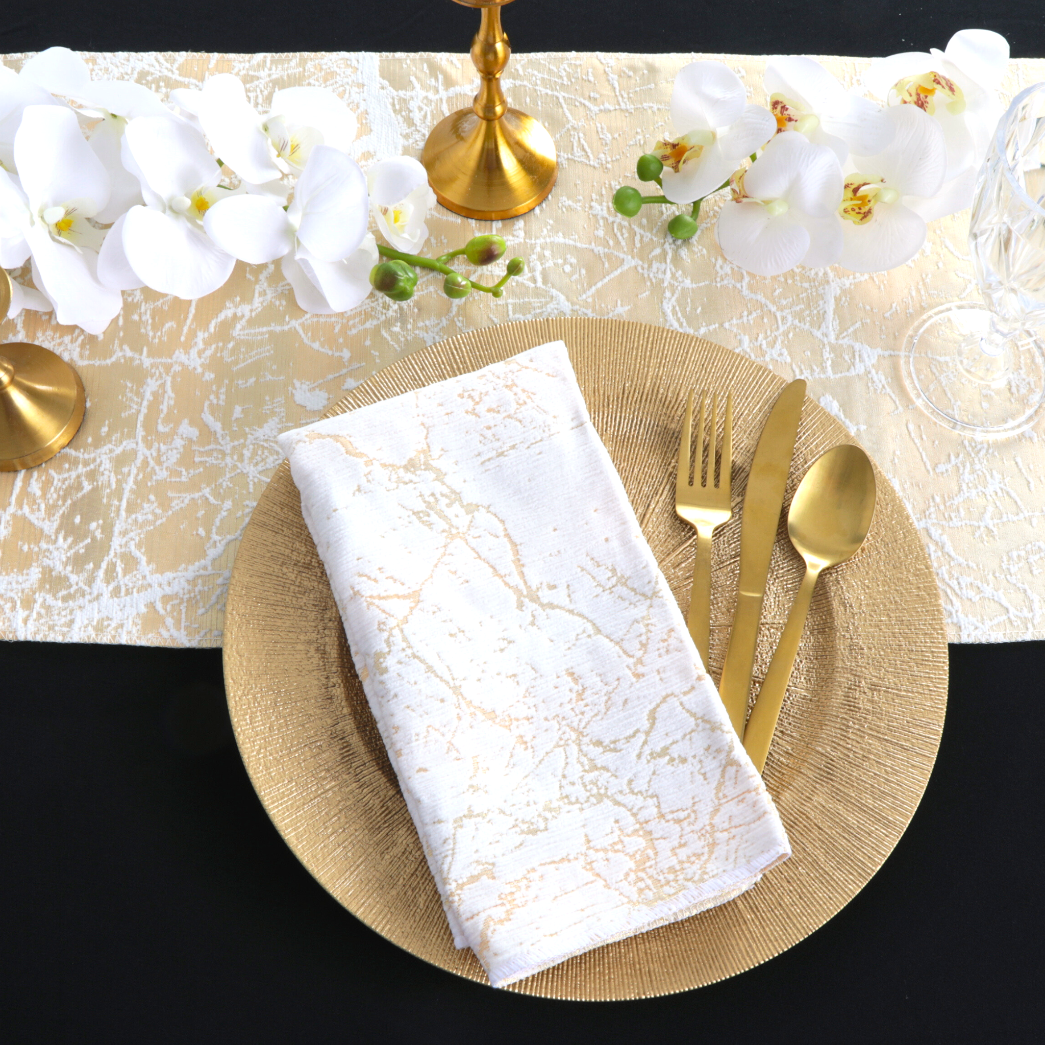 Creating a breathtaking tablescape begins with the right foundation, and our gold marble reversible jacquard table runner is the ideal piece to set the tone for an extravagant event.