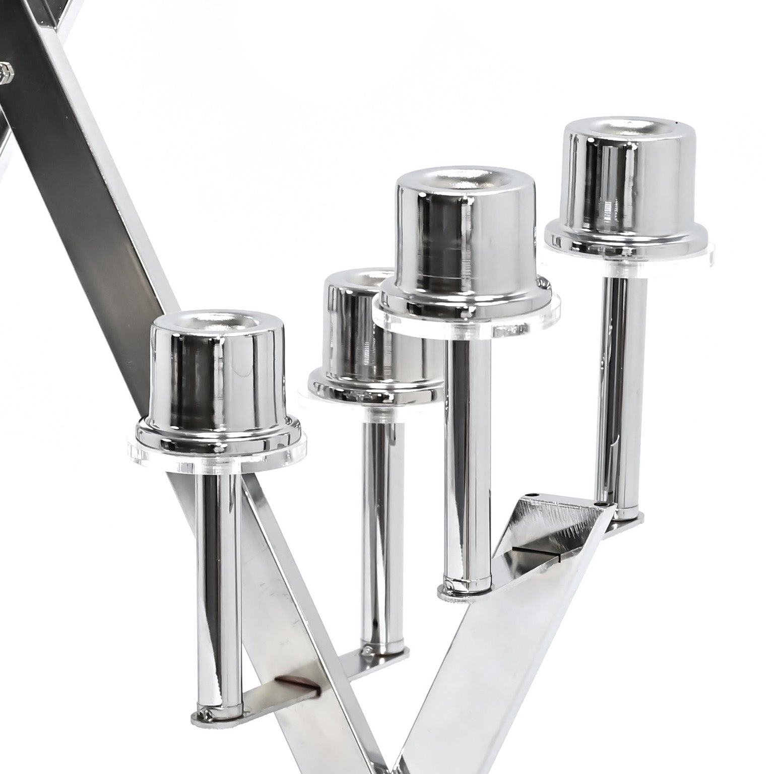 Silver metal candle stand holders add a modern touch to any event. This large, multi-branch candelabra can accommodate up to 16 taper or LED candles and will make a breathtaking display that will take your venue to the next level.