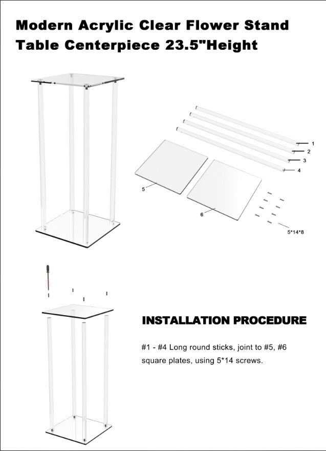 Exuding a regal yet minimalist appeal, our Modern Acrylic Clear Flower Stand Table Centerpiece is the perfect decor solution for any catered event for the exhibition of your desserts or eloquent flower centerpiece displays. For a dreamy design with a fairytale appeal, consider placing floral arrangements or drapery on top of this elegant column pillar stand. You can even up the appeal by placing a circular or square mirror just slightly larger in scale beneath the riser to emphasize your decorator's touch. This acrylic display stand features four 2.5cm thick poles for sturdily bearing the weight of your crystal, bouquets, candles, feather arrangements, and more.