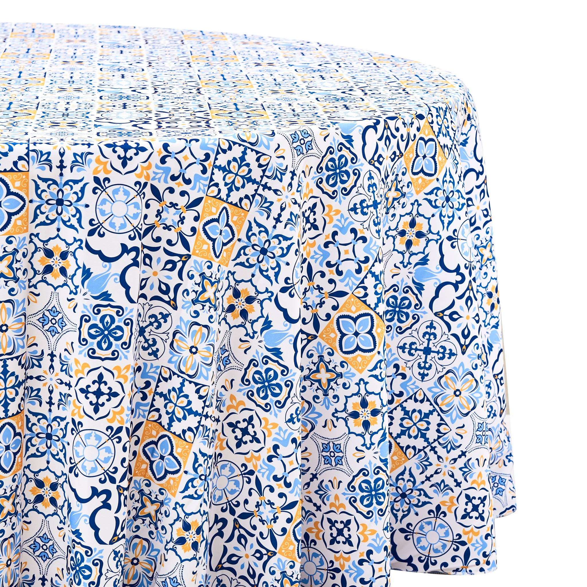 Enhance your event decor with the Morocco Mediterranean 120-inch Round Tablecloth in Royal Blue. This tablecloth is designed to create a bold and inviting dining atmosphere, making it an excellent choice for weddings, banquets, and themed celebrations.