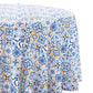 When used on a 60-inch round table (with a standard 30-inch height), this tablecloth will reach the floor, while on a 72-inch round table, it will hang approximately six inches above the ground. The fabric is easy to care for—machine washable and dryable without the need for bleach.