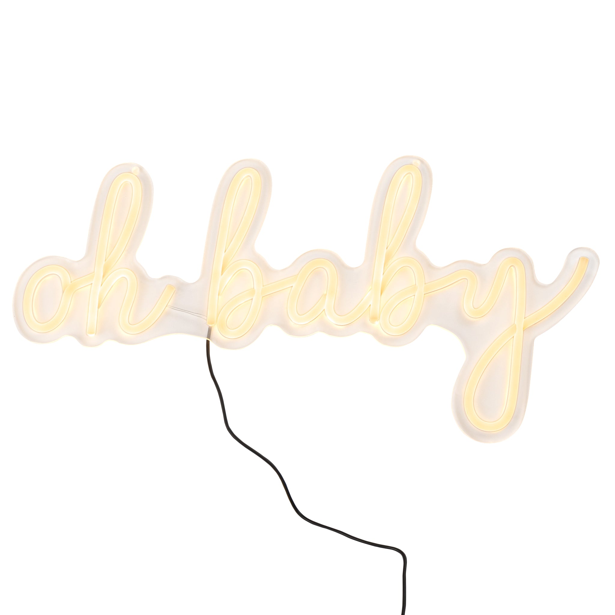 Set the scene to celebrate the newest family member and mom-to-be with our Oh Baby Neon Sign. Measuring 57cm x 27 cm, this can't-miss decoration will become a prominent feature at your party with its fun retro flair. This lighted sign will look lovely hanging on a wall, window, doorway, or behind the mom-to-be's throne chair. You can hang it alone or pair it with drapery, boxwood greenery or flower wall panels for a more personalized aesthetic. The white LED lights over clear lightweight acrylic material, will match any theme making it perfect for a baby shower, gender reveal, or newborn photo shoot.