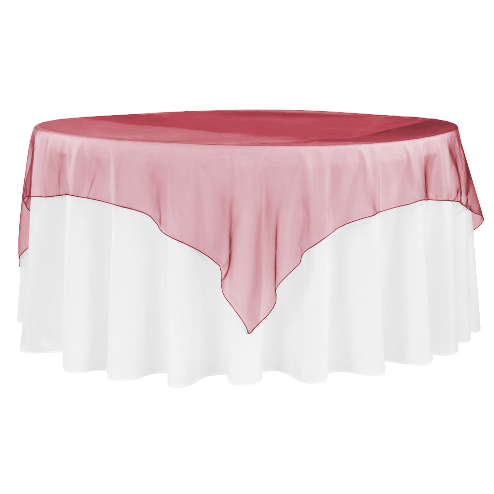 Organza Overlays will provide the splash of color your event needs! Sheer, flowing, soft and available in a stunning array of brilliant colors, our overlays can be placed over any of our tablecloths or several overlays can be stacked for a dramatic and opaque effect. Each overlay is made from only the highest quality organza, which means they feature a finished edge and are less likely to snag during your event. Best of all, organza is an easy to care for fabric and can be hand-washed and hang dried! Our Organza Overlays are beautiful, economical, and will instantly transform any simple decor into a colorful extravaganza!