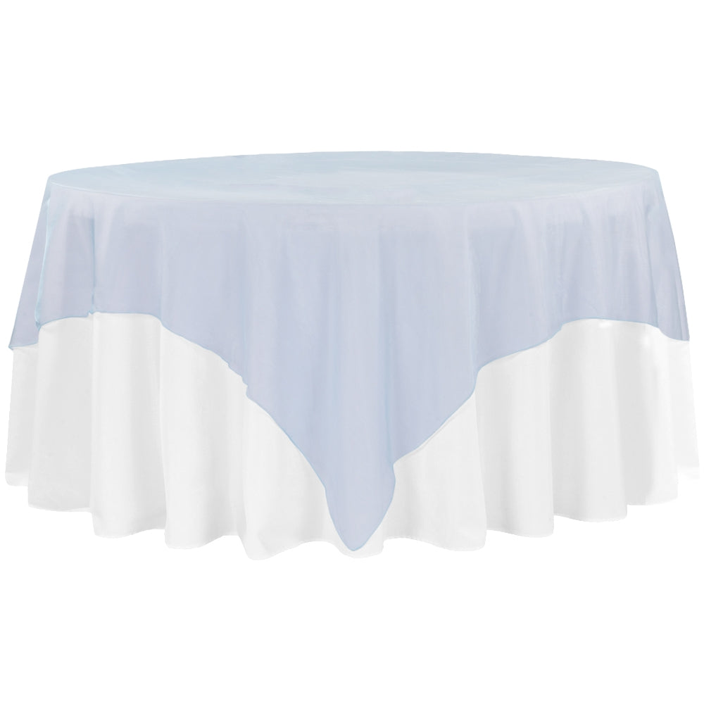 Organza Overlays will provide the splash of color your event needs! Sheer, flowing, soft and available in a stunning array of brilliant colors, our overlays can be placed over any of our tablecloths or several overlays can be stacked for a dramatic and opaque effect. Each overlay is made from only the highest quality organza, which means they feature a finished edge and are less likely to snag during your event. Best of all, organza is an easy to care for fabric and can be hand-washed and hang dried! Our Organza Overlays are beautiful, economical, and will instantly transform any simple decor into a colorful extravaganza!