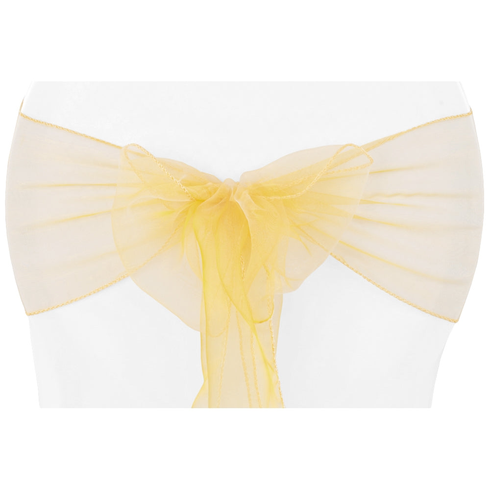 Organza sashes are a flexible material that lends itself well to multiple uses. Our Chair Sashes in Gold Antique are a perfect addition to your stash of event decor.