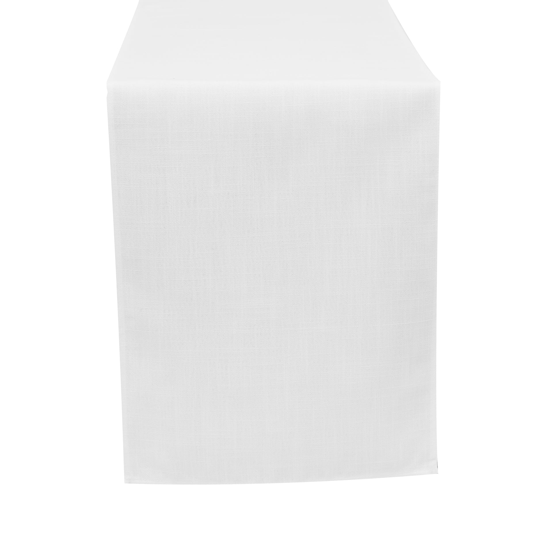 Each piece measures 12.5" W x 108" L, with a clean serge hem for a neat look. It combines the classic style of linen with the convenience of polyester. It is soft to the touch, has a natural matte finish, and gives every setup a stylish look.