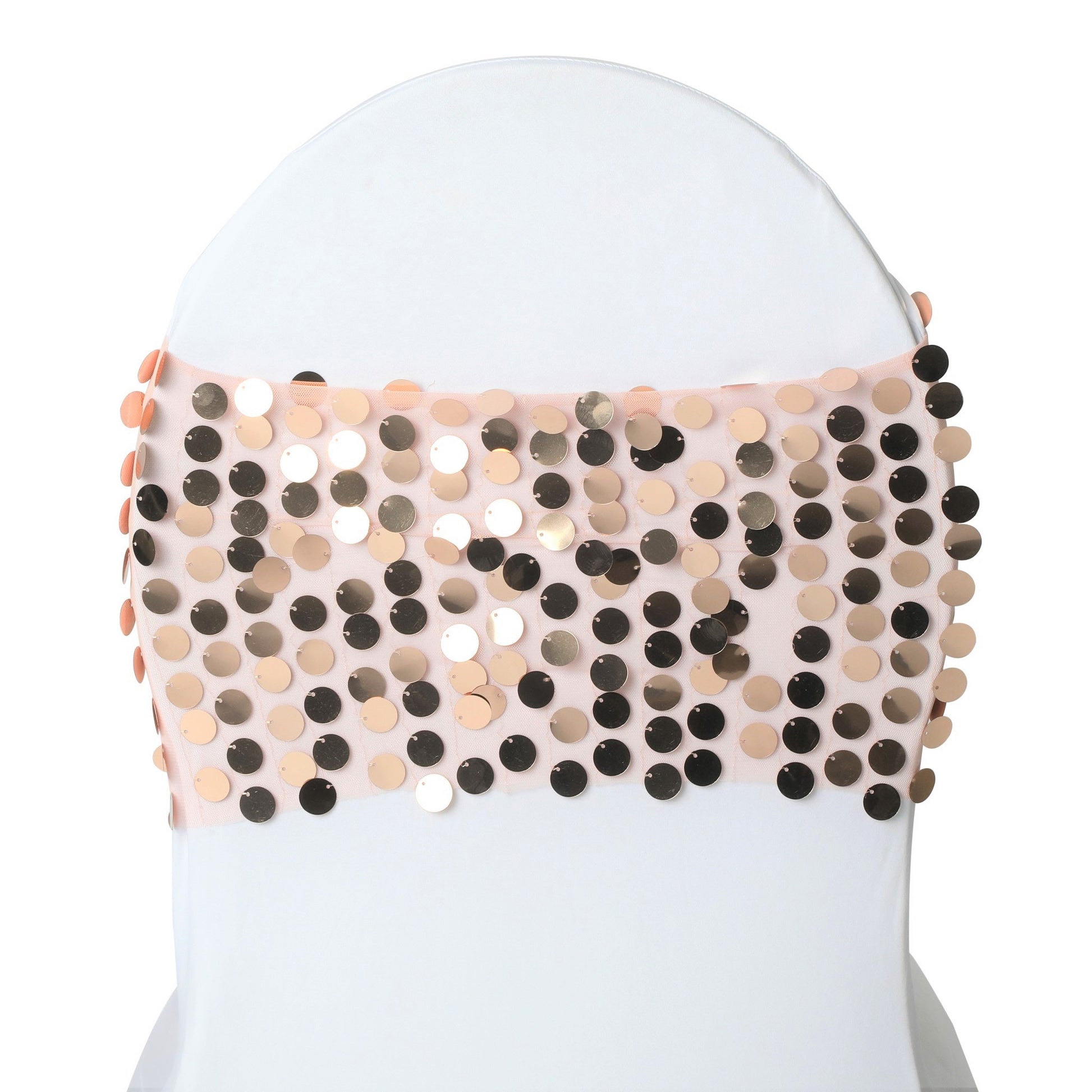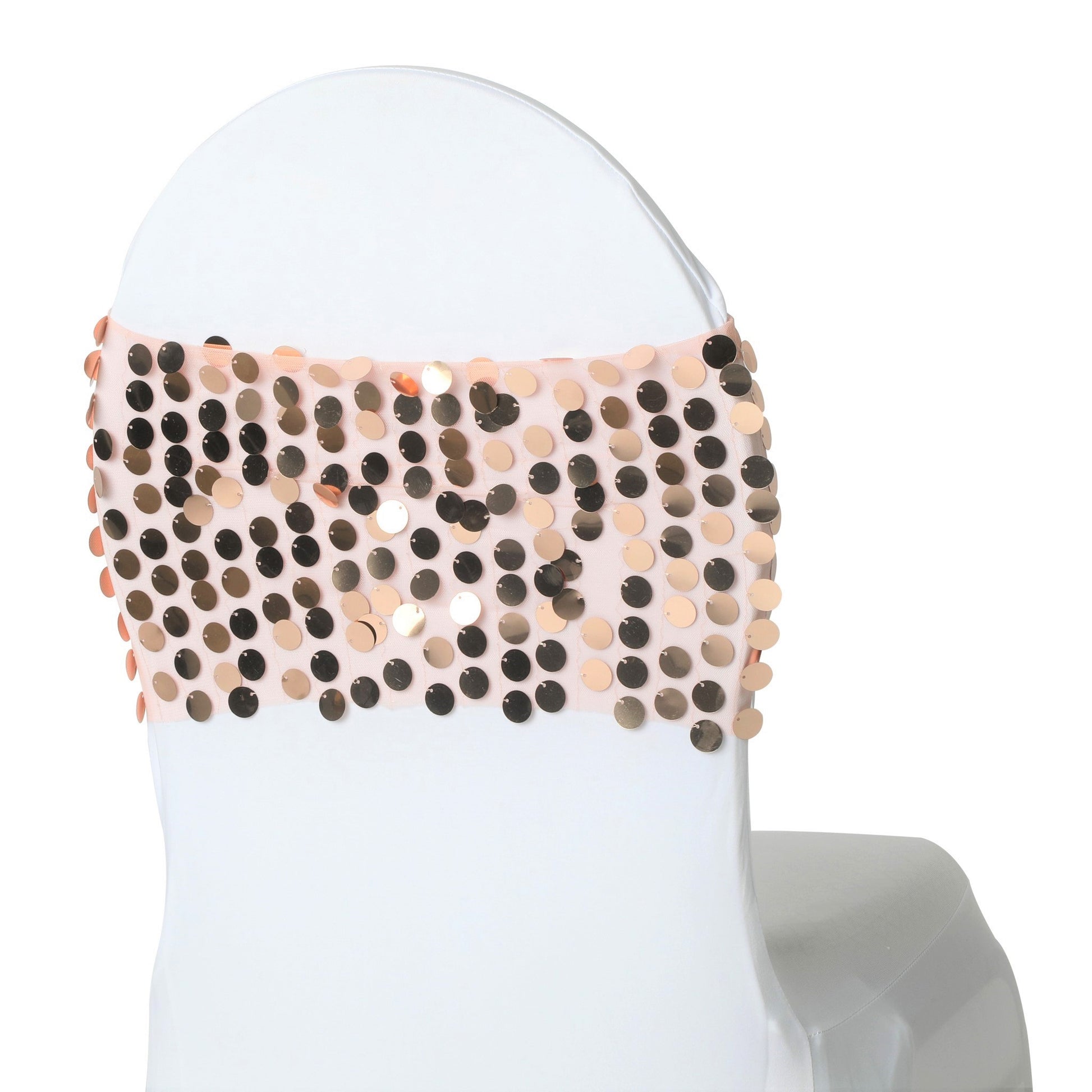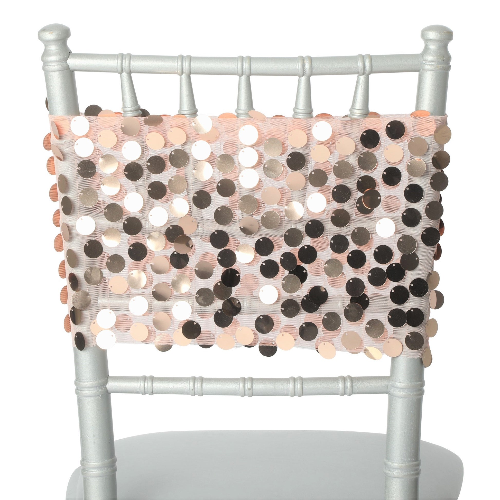 These blush rose gold sequin chair bands bulk are highly versatile and can be paired with a variety of chair styles and colors. Whether you have traditional wooden chairs or sleek modern designs, our chair bands will effortlessly complement your chosen aesthetic.