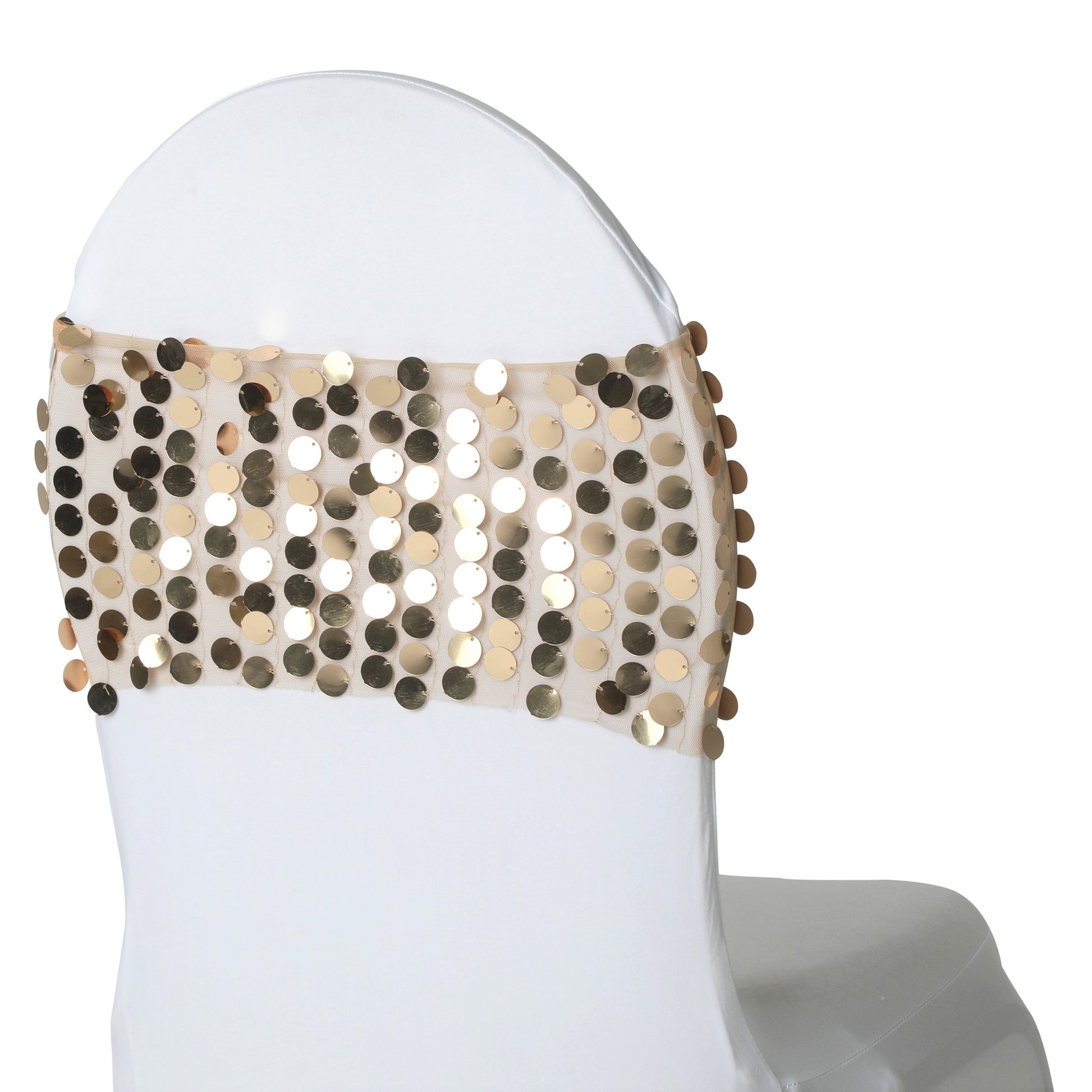 With years of experience in the event industry, CV Linens has established a reputation for delivering top-quality products. You can buy chair sashes wholesale and enjoy generously low prices, allowing you to stretch your event planning budget. If you order champagne sequin chair bands in bulk, you can get more discounts and even free shipping if your order reaches $99. We understand the importance of attention to detail and strive to exceed our customers' expectations.