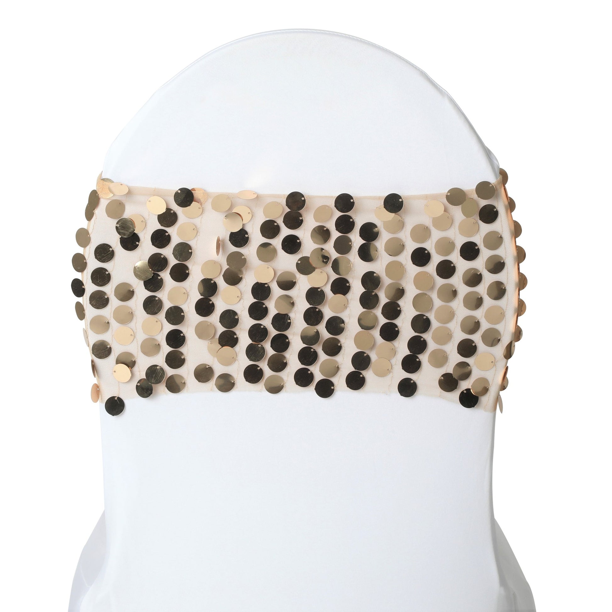 Why Trust CV Linens With These Champagne Payette Sequin Chair Bands Wholesale?