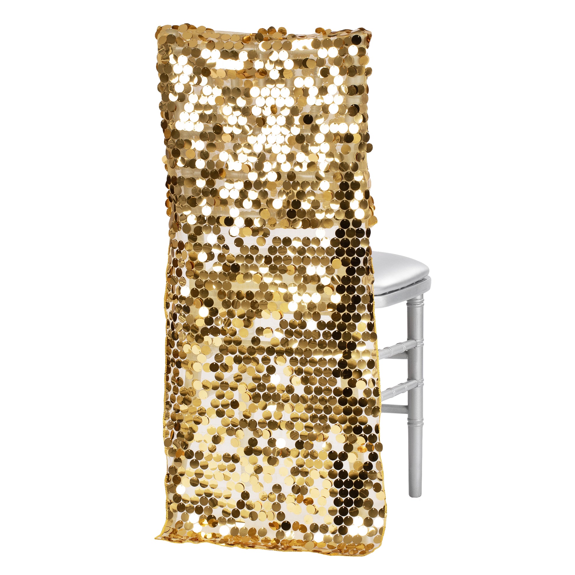 Chair back covers convert regular Chiavari chairs into a well-designed masterpiece that effortlessly complements not only your individual guest tables, the entirety of your wedding decor and theme! Our sequin chair jacket is a luxurious and glamorous way to carry over your color palette and event theme right into the aesthetic of your chairs. At the same time, it makes your guests feel like honored VIPs and creates such an upscale look in unison with your other decor, that it will be easy for all in attendance to forget the constraints of reality and instead immerse themselves fully in the fantasy of your special day. With discount chair back covers, you can stylishly complete the elegant presentation of birthday parties, weddings, bridal or baby showers, anniversaries, Sweet 16 parties, quinceaneras, or corporate events