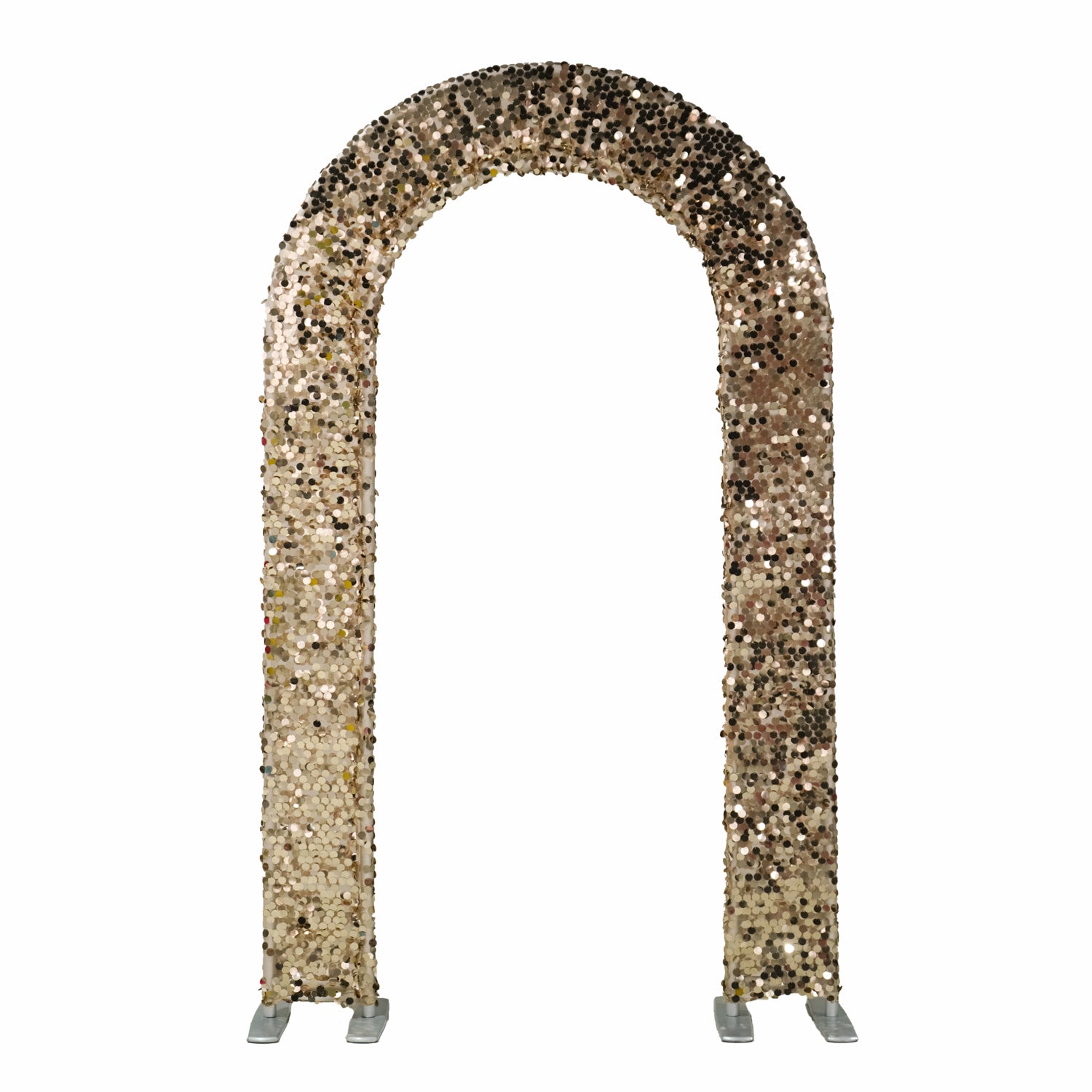 With its intricate design featuring open centers adorned with shimmering sequins, it creates a captivating play of light and texture that's sure to mesmerize. In a mesmerizing hue of champagne, this arch cover adds an aura of luxury and enthusiasm to any occasion.