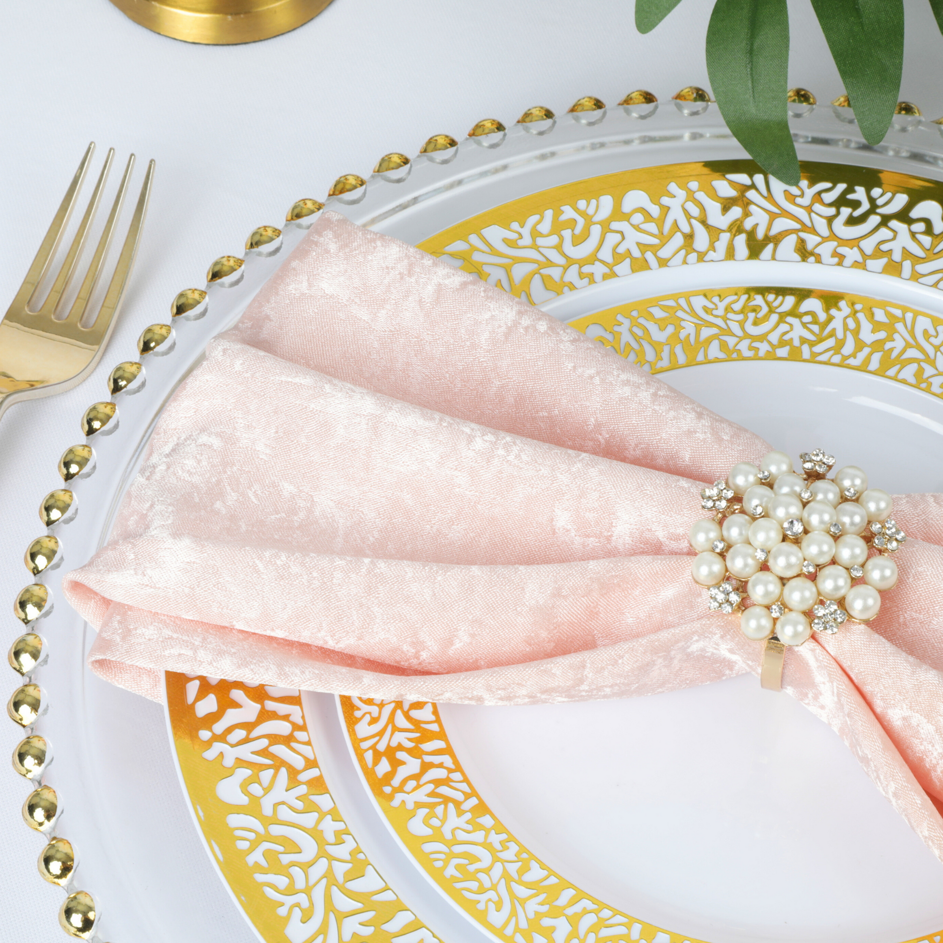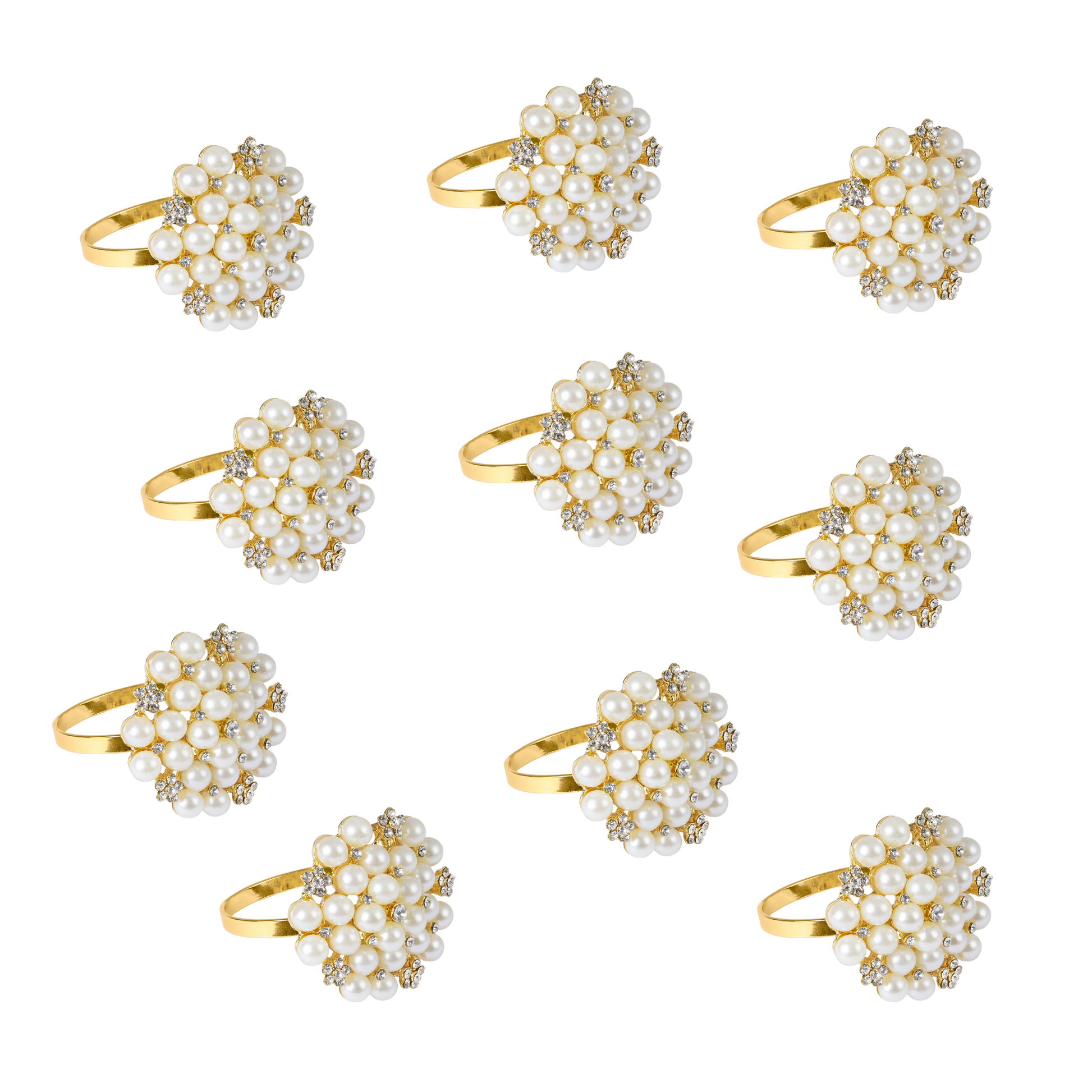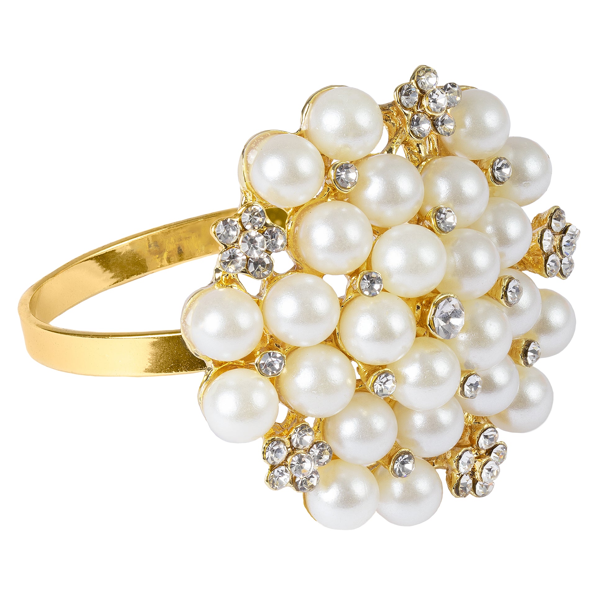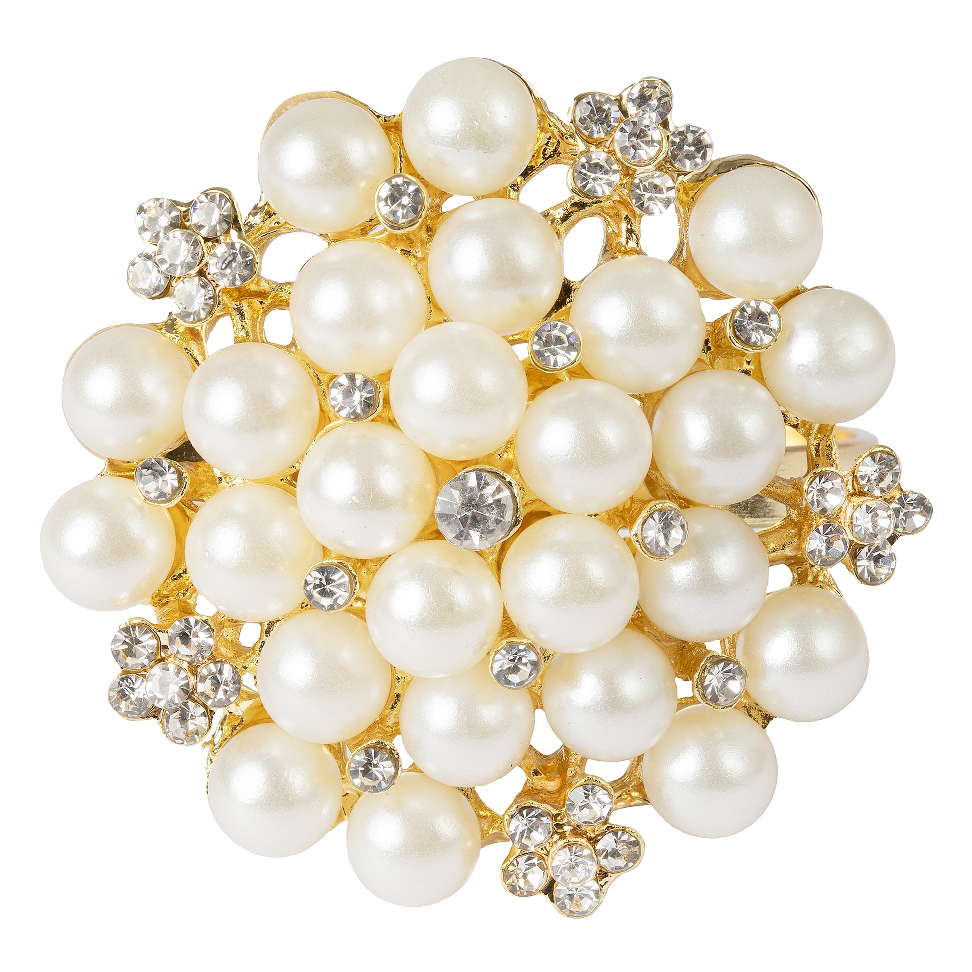 Seeking out something a little extra to bling up your event ballroom or party venue tablescape? Our Pearl and Diamond Cluster Napkin Ring - Gold is the perfect complement to your upscale table settings as a glamorous finishing touch. This elegant faux pearl napkin ring featuring faux pearl and diamond beading in a beautiful clustered design will take your table setting from casual to formal with stylish flair! They easily coordinate with any napkin color, plus they complement both plain linen or patterned napkins. Buy gold napkin rings in bulk with great wholesale prices that helps you keep on budget. These bejeweled napkin rings help you wine and dine in style. As the best wedding napkin ring for luxury weddings, our napkin rings add some old world charm to your wedding reception, birthday party, bridal shower brunch, or baby shower.