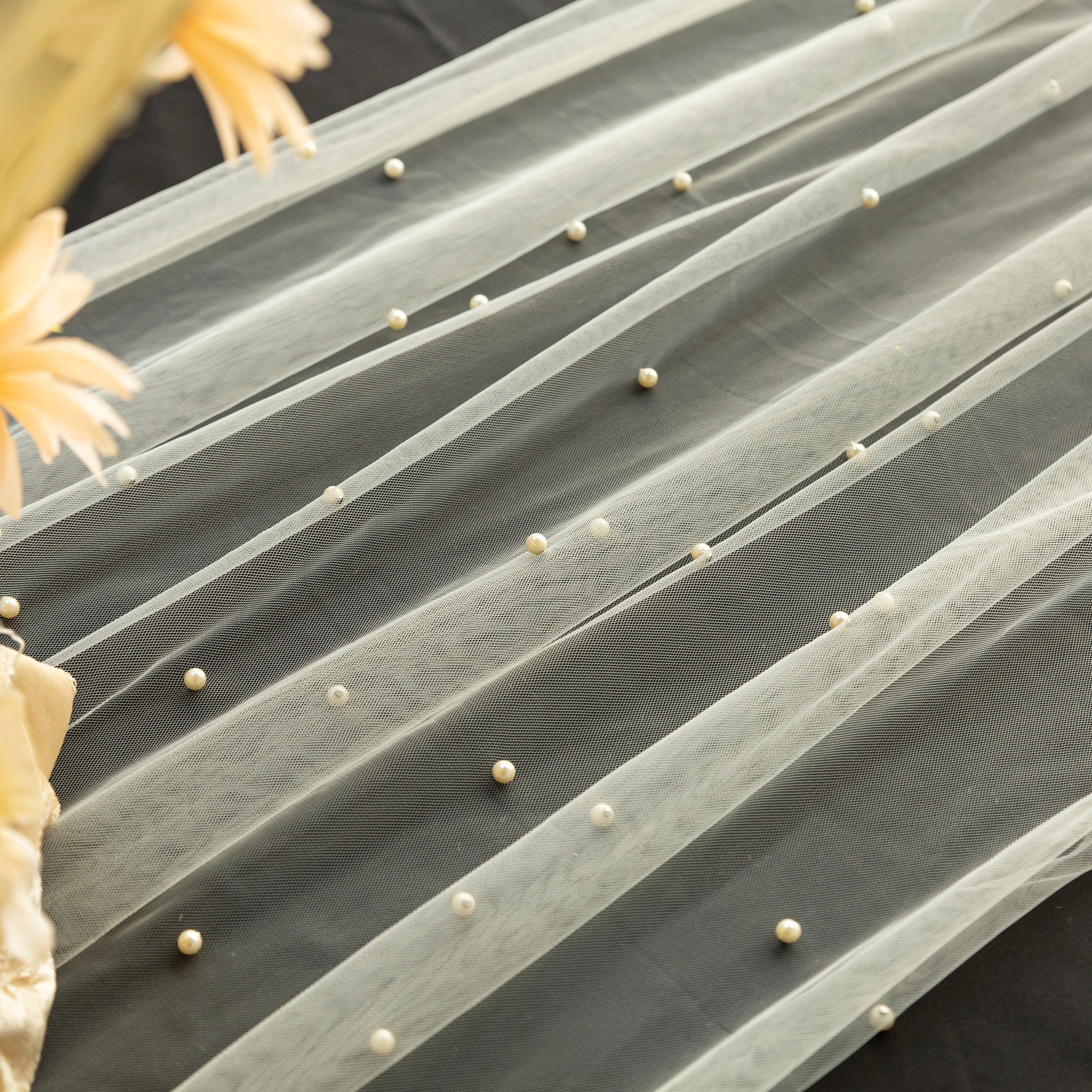 Handwashing is recommended to preserve the delicate pearls and sheer fabric. Use cold water and mild detergent, then air dry flat. Avoid wringing, machine washing, or ironing, as these may damage the tulle or pearl embellishments.