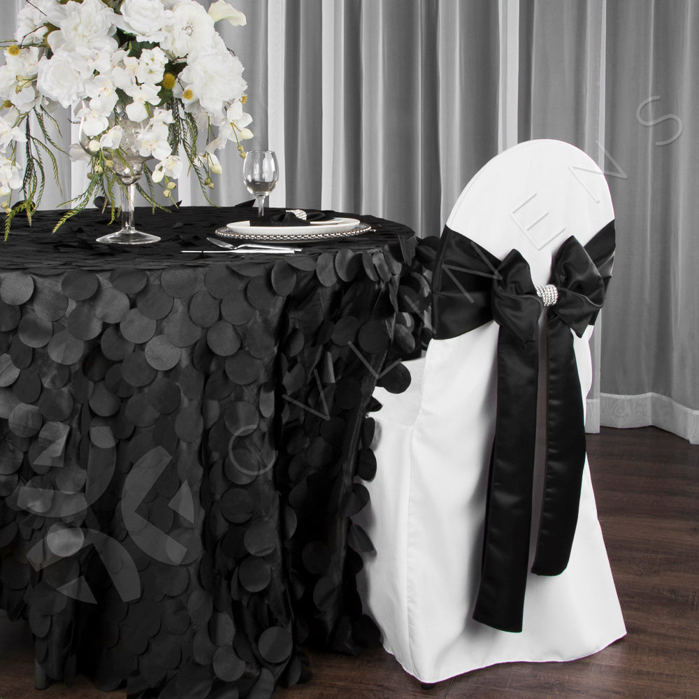 Add some refined fun to your event with our Petal Circle Taffeta Tablecloths! Each tablecloth is covered in playful geometric circles that are hand-sewn into our durable taffeta base to create a chic and unique look for your wedding or event decor. Taffeta is a high-end fabric that is true to color, lightweight, and has a smooth texture to give a soft sheen throughout your venue. Candle and soft light reflect well on taffeta to create the perfect ambiance for your special day!
