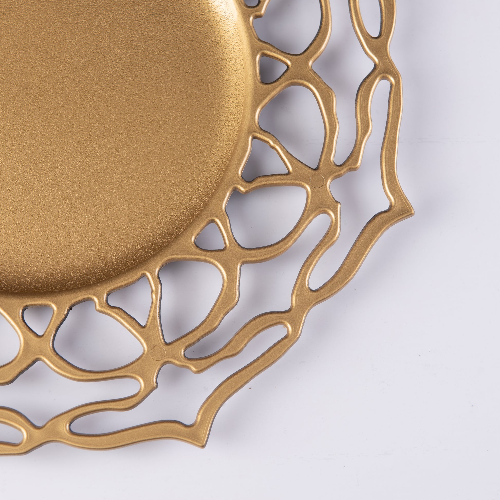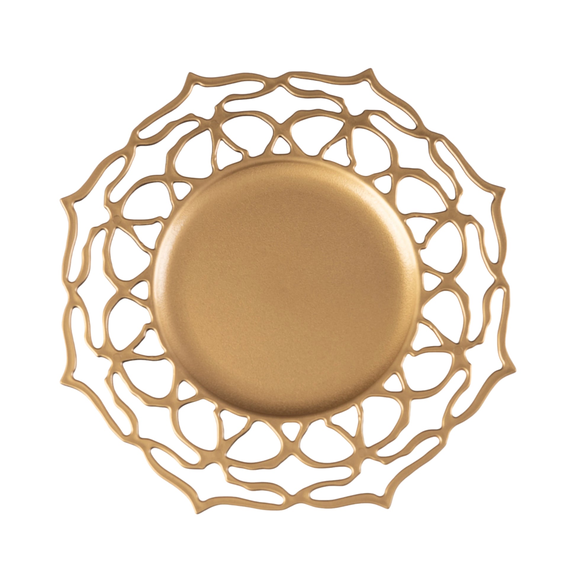 Aside from these beautiful gold plate chargers, we also have them in black and silver. We also offer champagne charger plates bulk, velvet burgundy backdrop panels, table runners, chair covers, chair sashes, and more. For other styles, we also have boho charger plates wholesale and reef charger plates bulk.