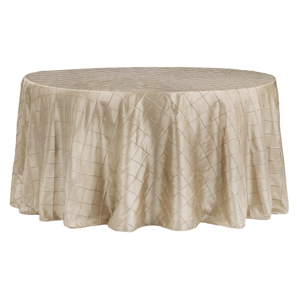 Our Pintuck Tablecloths will ensure your event looks luxe and classic! Pintuck taffeta is a high-end fabric that is true to color, lightweight, and has a smooth yet textured surface to provide a soft sheen throughout your venue. Candle and soft light reflect well on taffeta to create the perfect ambiance for your special day! Each pintuck is a structured 3 inch puckered design. Our tablecloths also feature overlock serged edges so they're ready to use, easy to decorate with, and are stress-free. Wholly versatile, our Pintuck Tablecloths can be dressed up for a chic wedding or dressed down for a low key rustic event!