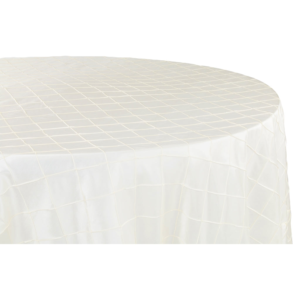 Our Pintuck Tablecloths will ensure your event looks luxe and classic! Pintuck taffeta is a high-end fabric that is true to color, lightweight, and has a smooth yet textured surface to provide a soft sheen throughout your venue. Candle and soft light reflect well on taffeta to create the perfect ambiance for your special day! Each pintuck is a structured 3 inch puckered design. Our tablecloths also feature overlock serged edges so they're ready to use, easy to decorate with, and are stress-free. Wholly versatile, our Pintuck Tablecloths can be dressed up for a chic wedding or dressed down for a low key rustic event!
