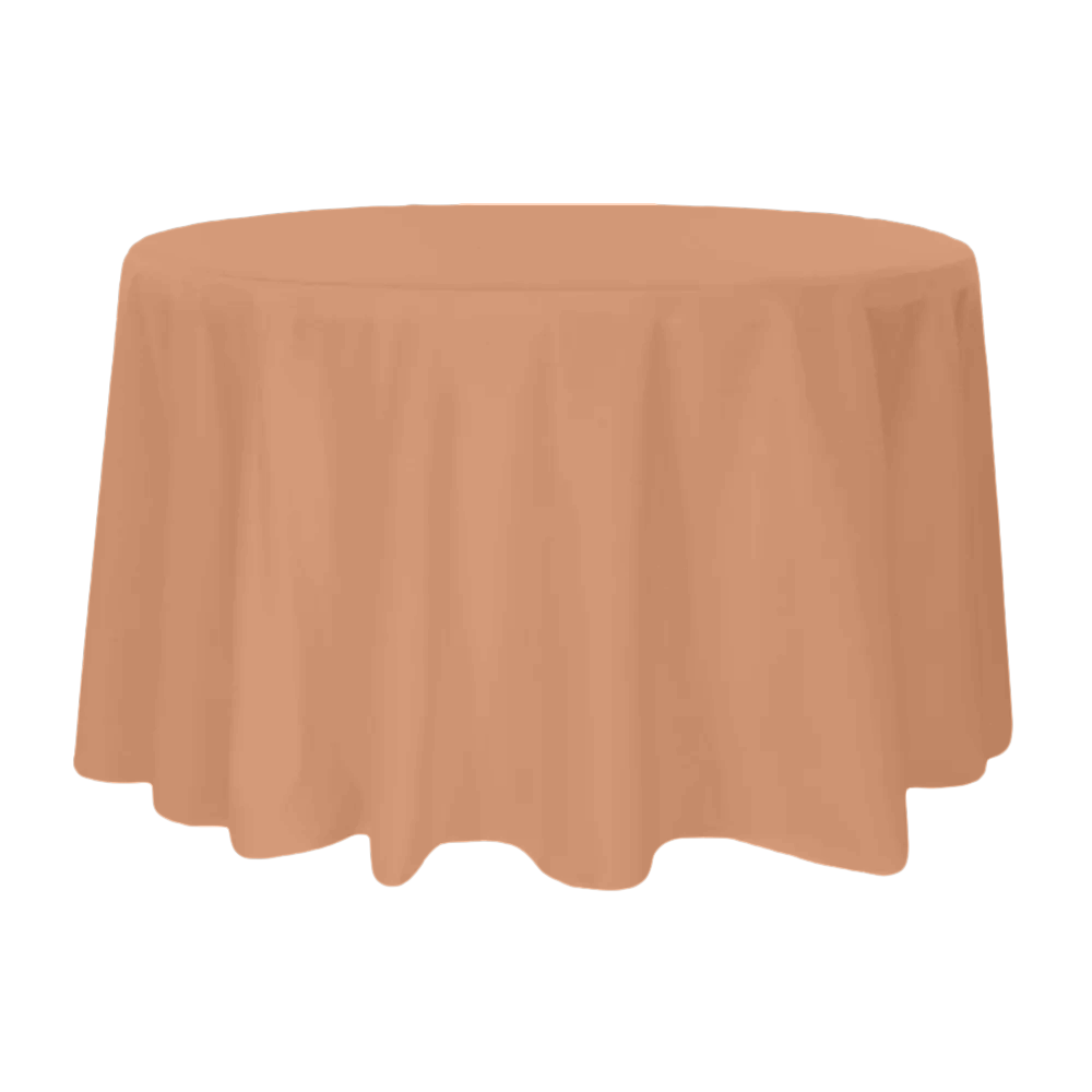 Enjoy the lush shade of latte rose, perfect for wedding receptions, anniversaries, corporate events, and a host of other special occasions. The latte rose 120" round polyester tablecloth is a standout piece that combines elegance with everyday usability.