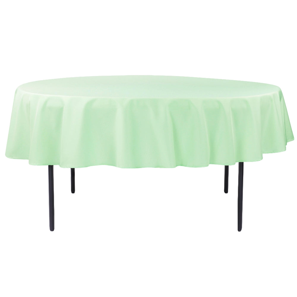 Give your wedding tables a polished look with polyester round table cloths. Our 90” Round Polyester Tablecloth in Mint Green is a versatile canvas for your tablescape masterpieces.