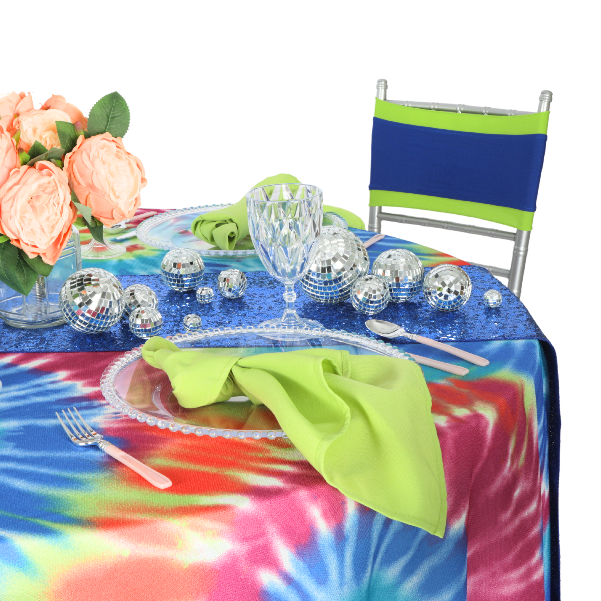 Host an unforgettable dinner by pairing these napkins with show-stopping event essentials. Begin with your preferred table covering. Glitz sequin tablecloths provide a splash of sparkle and glam, while stretch spandex tablecloths provide a sleek, contemporary look.