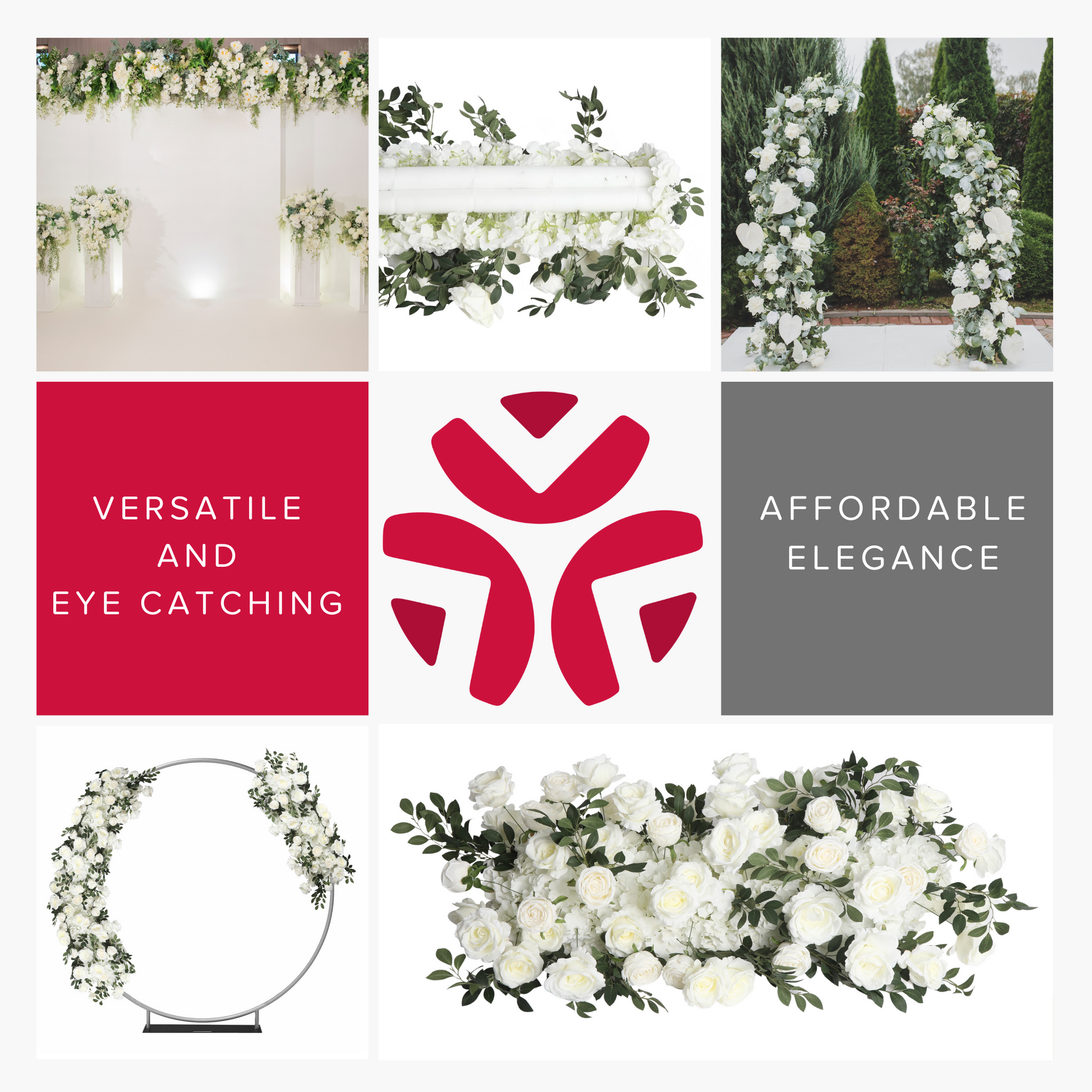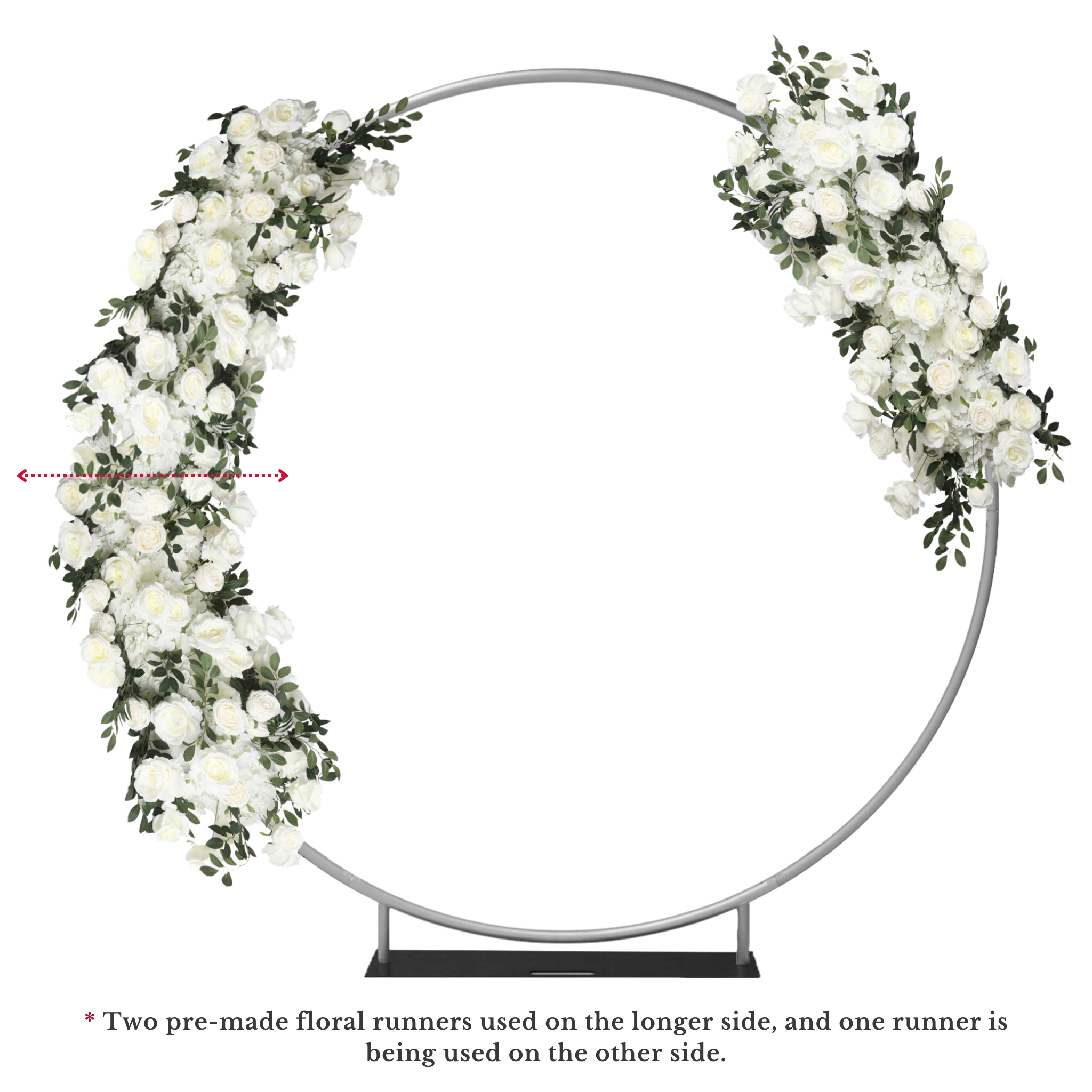 Explore our entire collection of beautiful flower arches/table runners. In addition to the soft pink and white, we also have red, pink, and white options to match your favorite event color scheme.