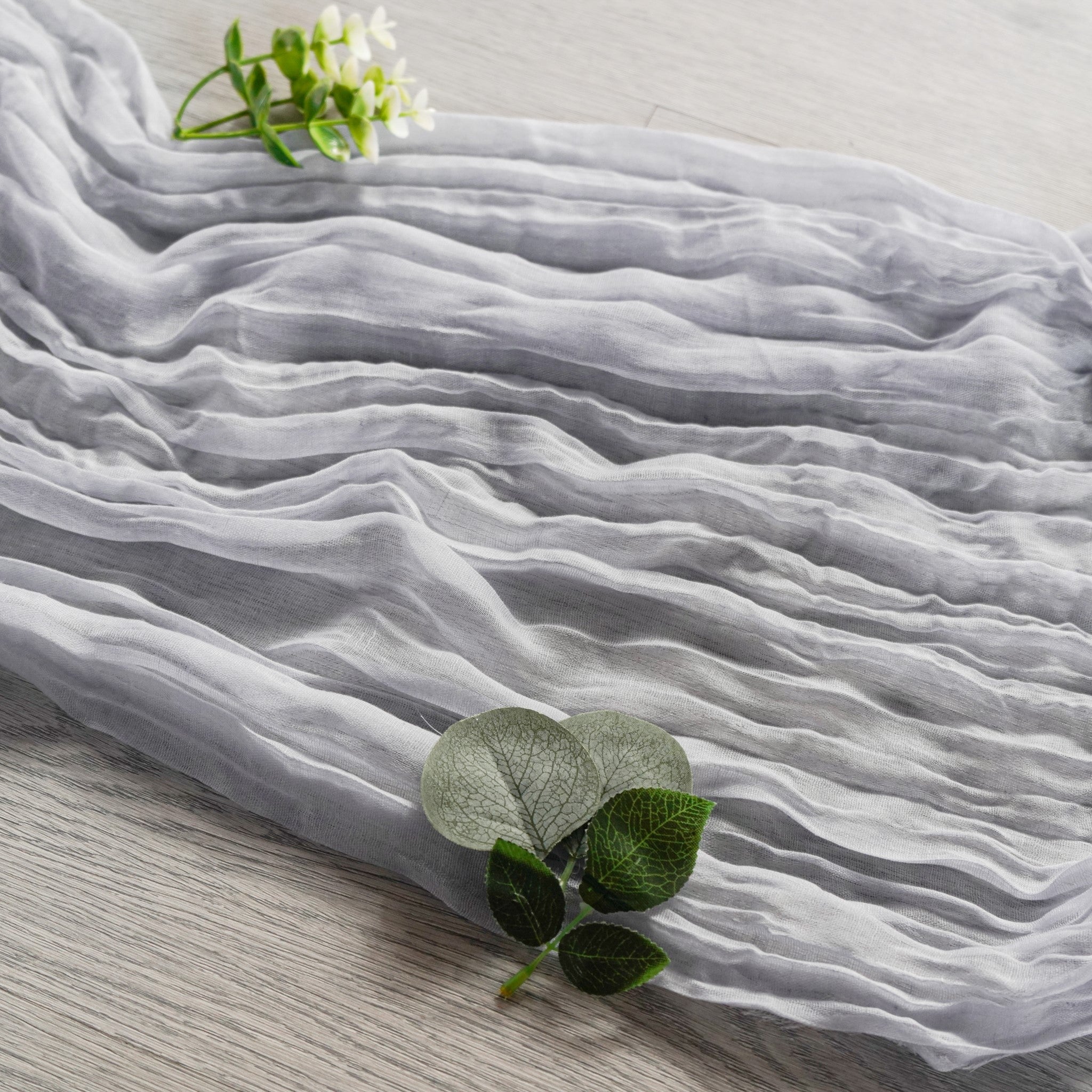 Of course, this gauzy cloth table linen can also be used to create more elegant settings when placed over tablecloths and topped with crystal centerpieces or twinkling fairy lights. Adding a cheesecloth table runner adds elegance to wooden tables without taking away from their beauty. The 16ft length is ideal for creating a cascading, pooling effect over the edge of tables. The extra long length easily allows the runner to intertwine around table centerpieces for a picture-perfect tablescape.