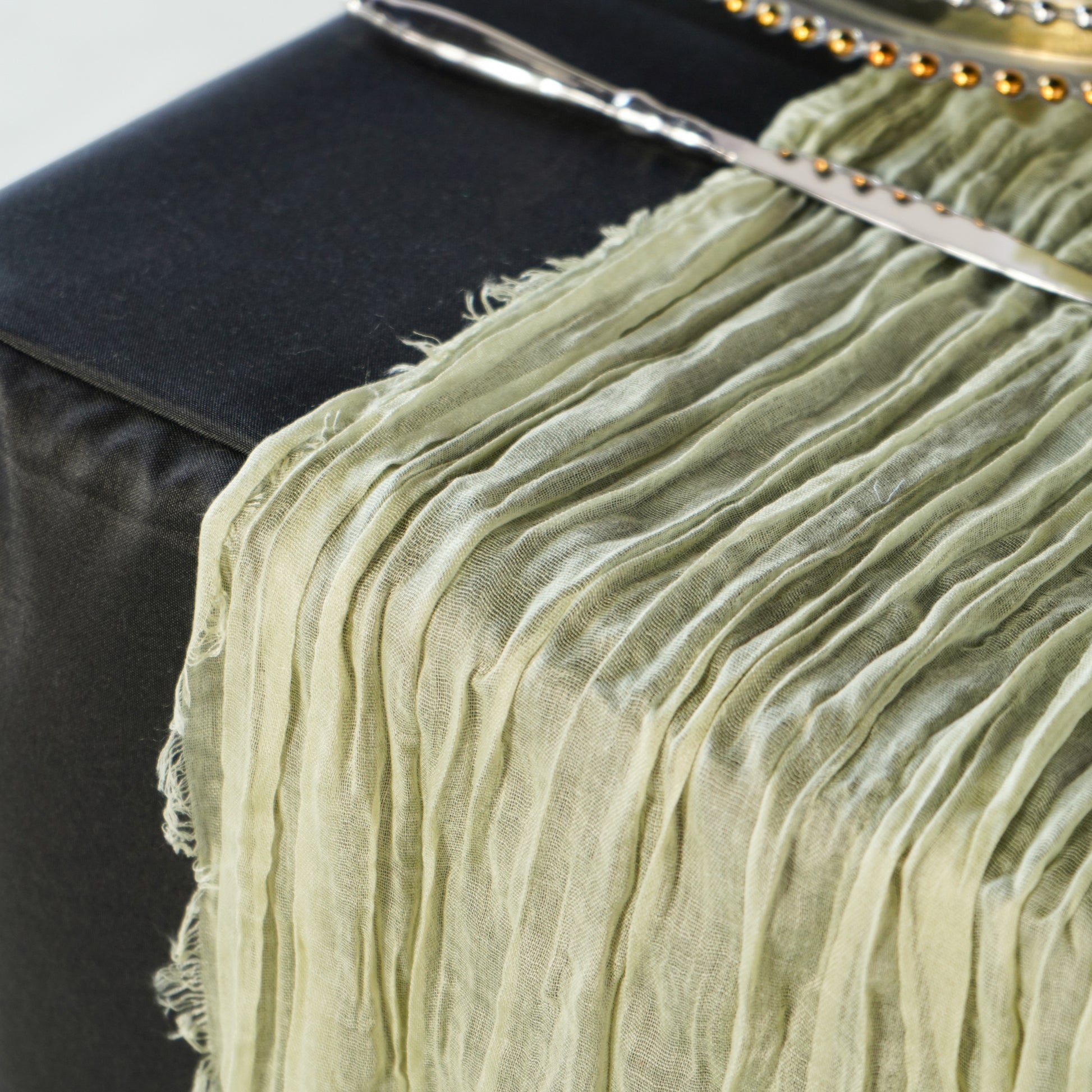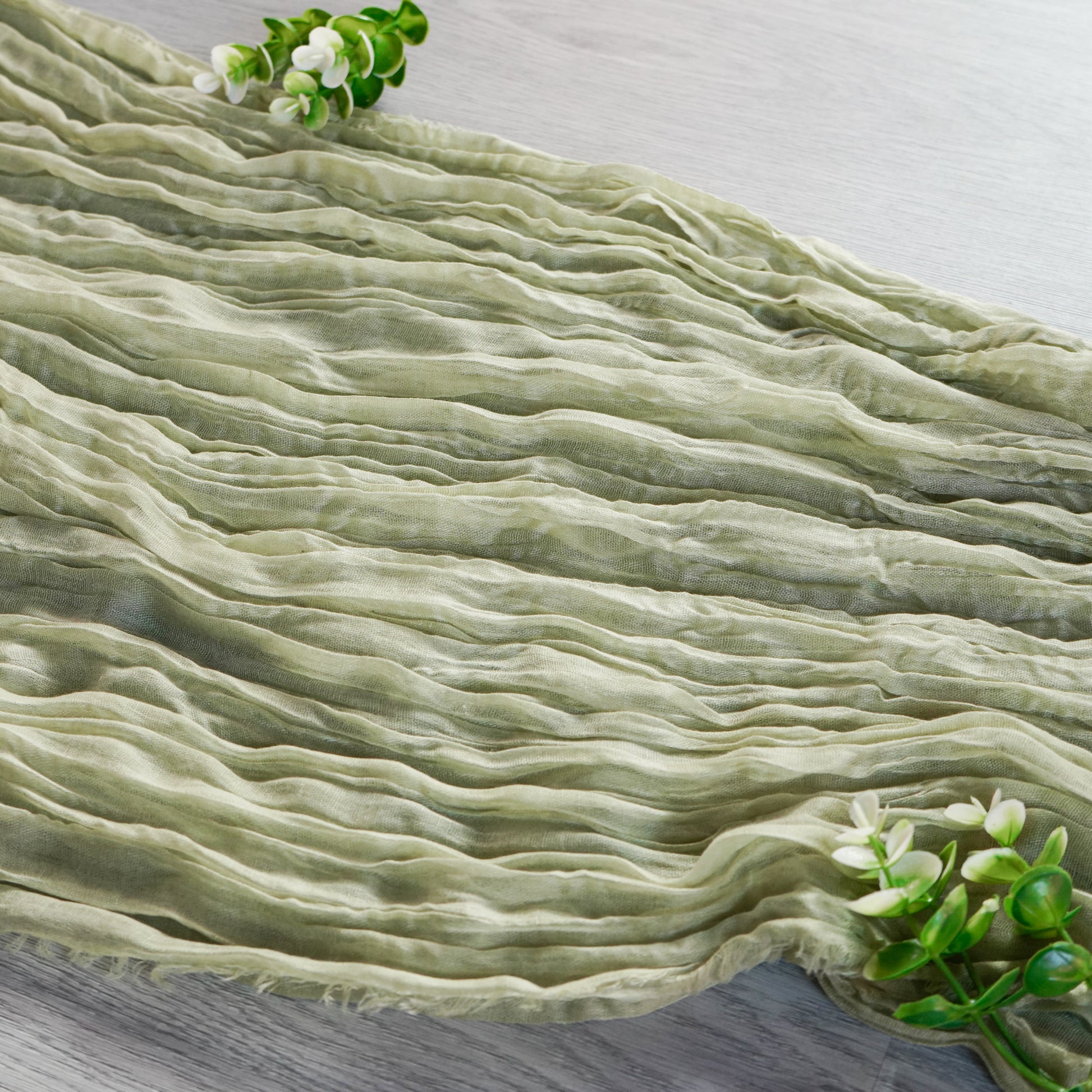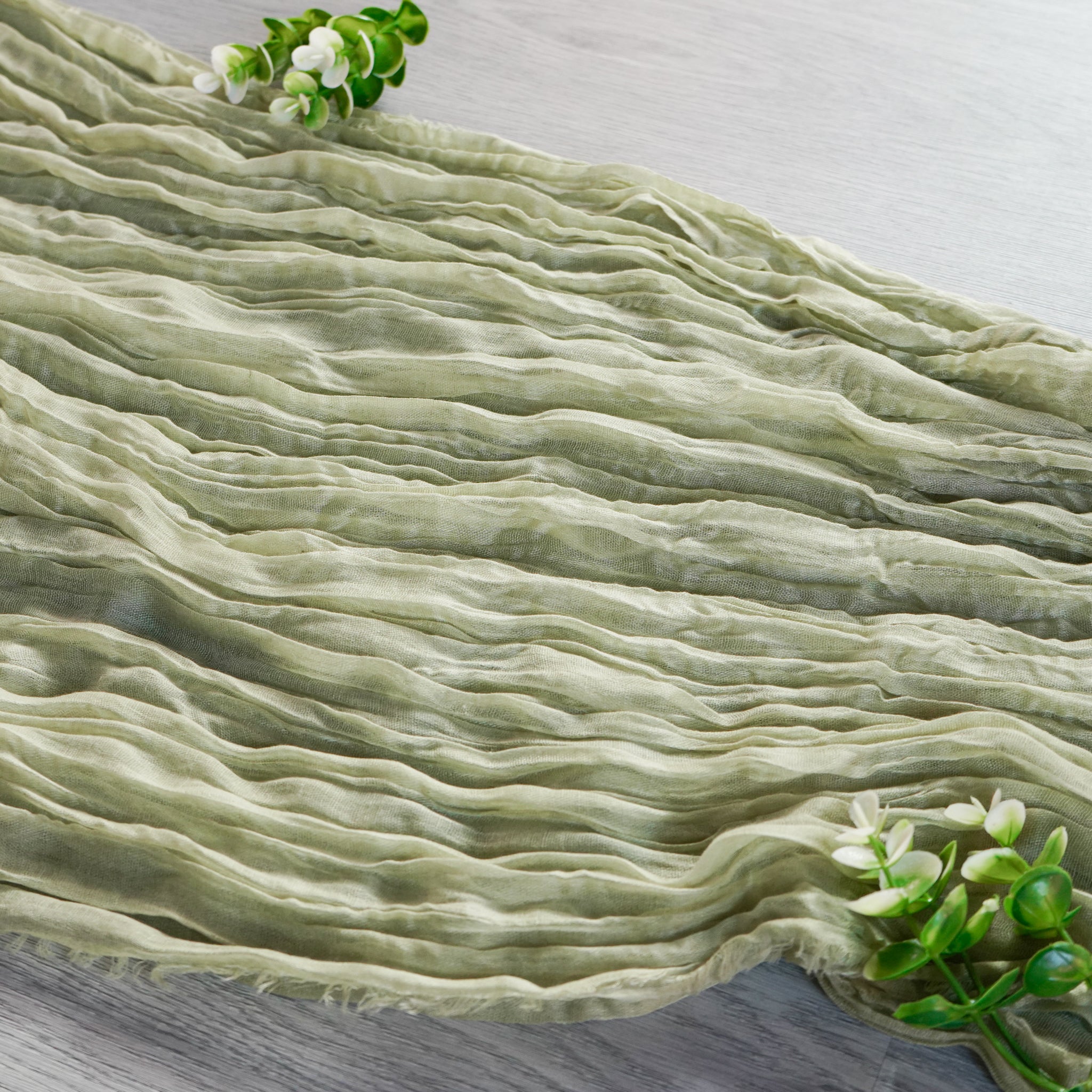 Create a beautiful tablescape with a lovely and minimalist Premium Cheesecloth Table Runner 16FT x 25" - Sage Green. This premium cheesecloth runner is so beautiful to use along with soft candlelight, lush greenery for minimalist weddings, or wood pieces for a cozy farmhouse aesthetic.