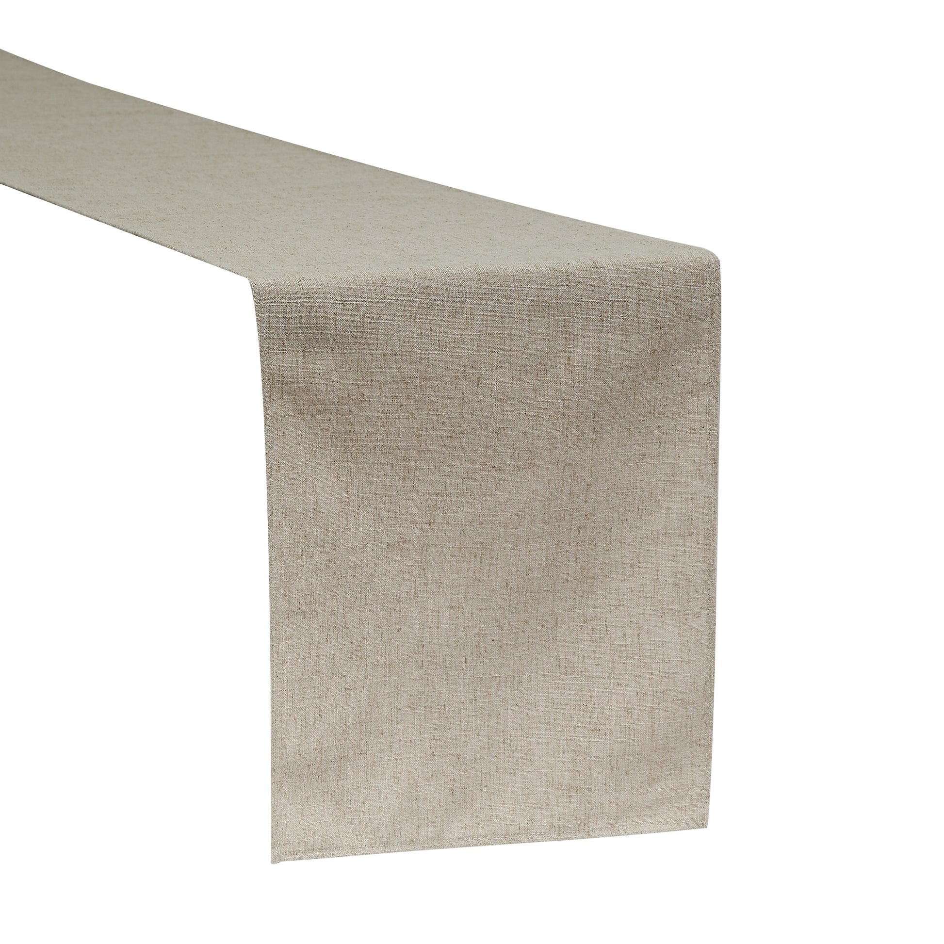 Each piece measures 12.5" W x 108" L, with a clean serge hem for a neat look. It combines the classic style of linen with the convenience of polyester. It is soft to the touch, has a natural matte finish, and gives every setup a stylish look.