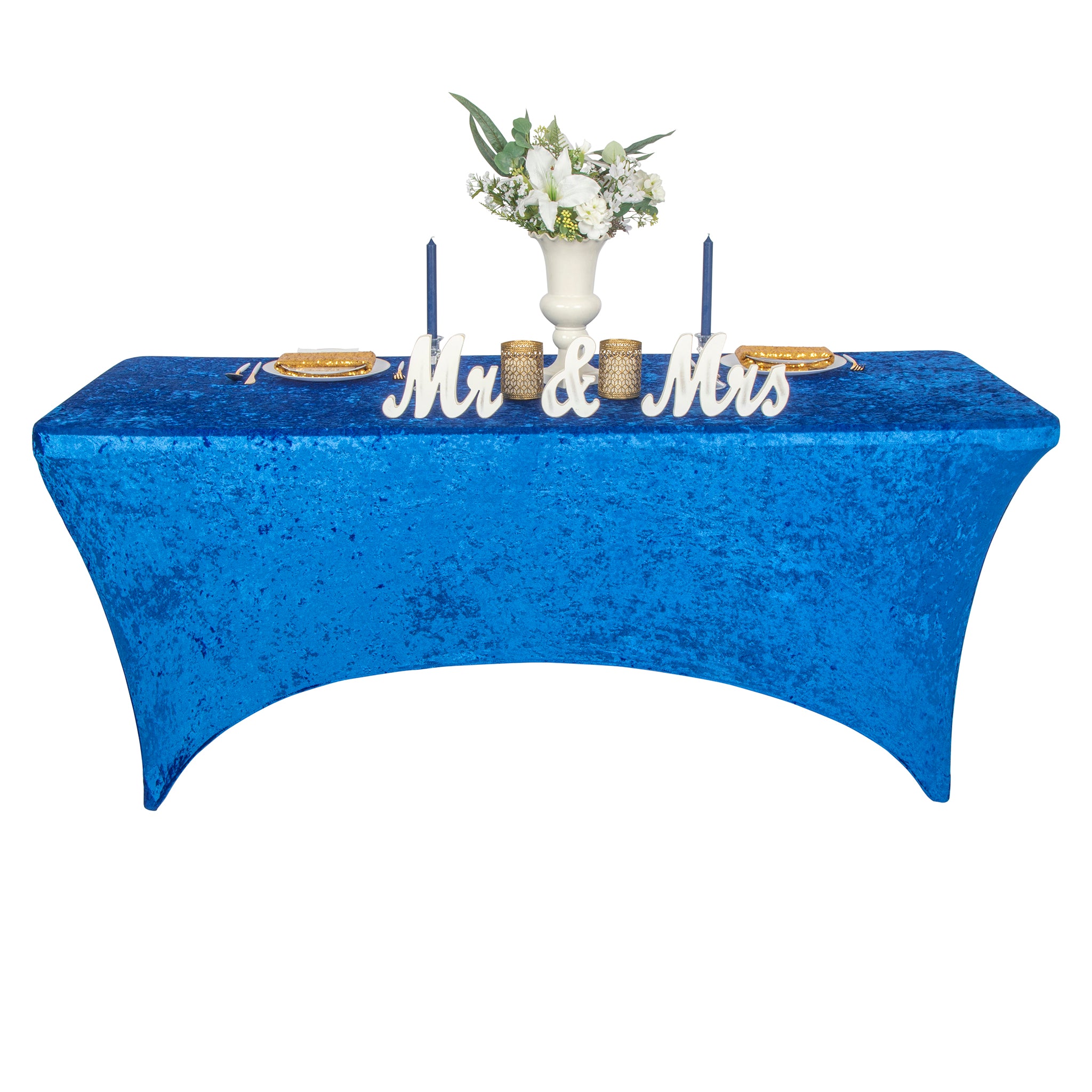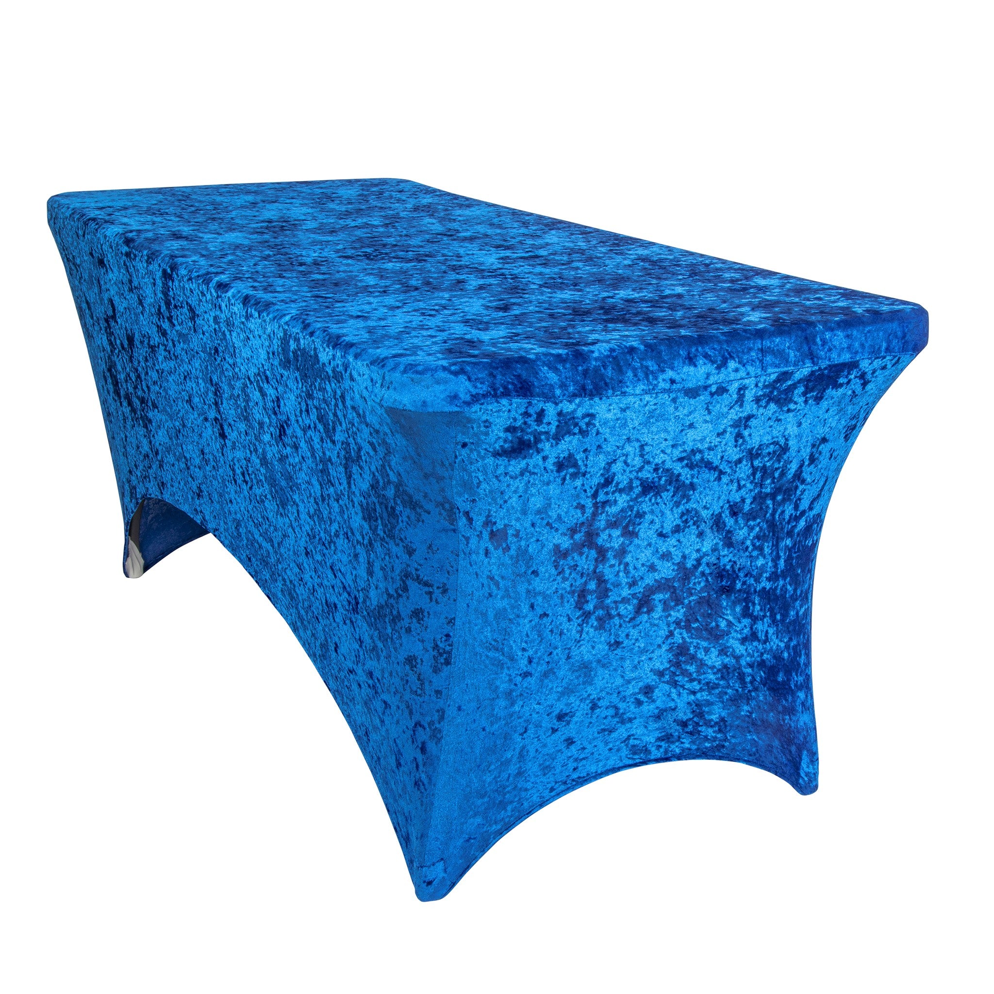Our velvet spandex table linens are easy to slip on and decorate with, making them the perfect choice for busy party planners. Fitted velvet rectangular tablecloths cover the top and sides of your table and feature four reinforced pockets for the leg feet to hold it securely in place during any special event.