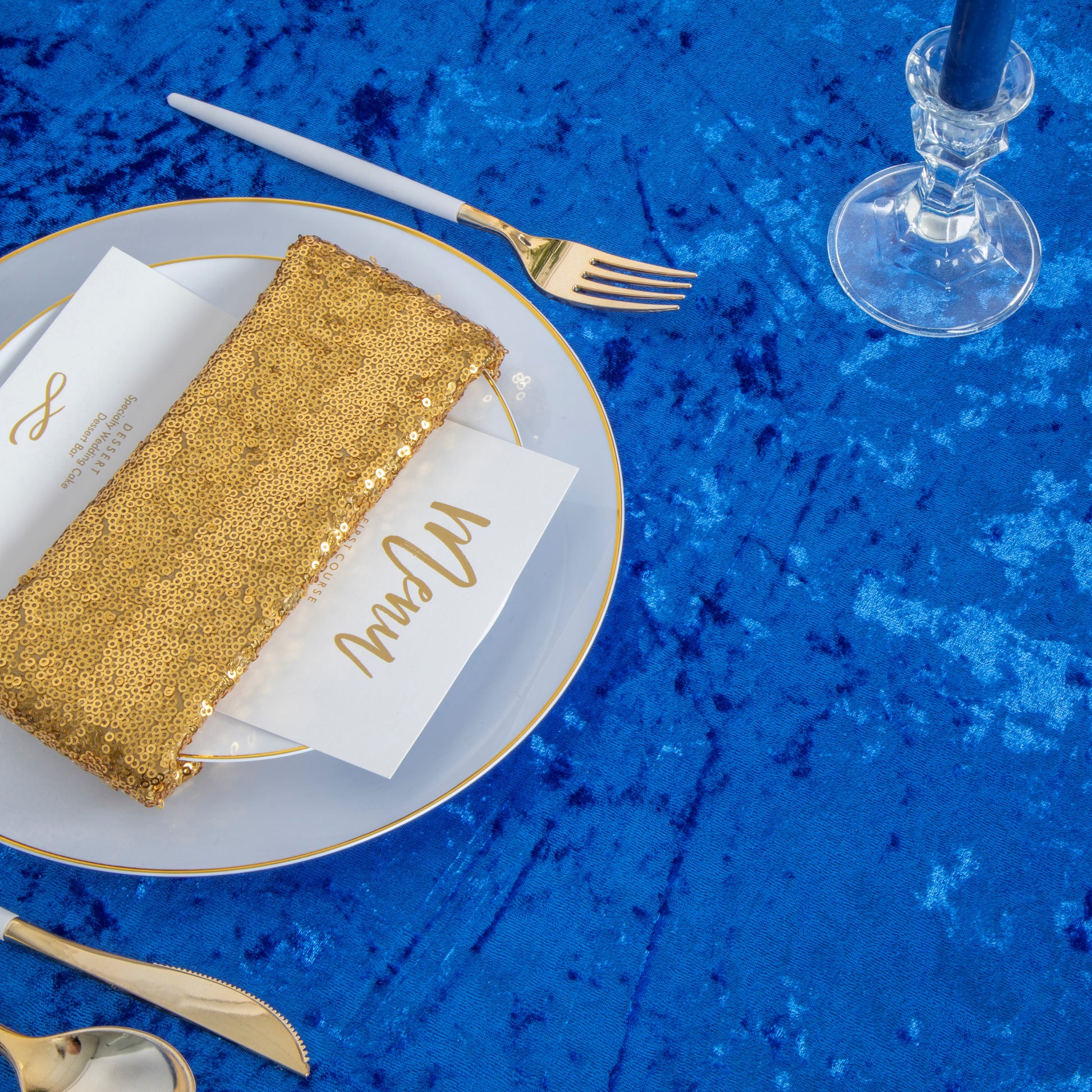 The elegant sheen of luxe velvet fabric is a beautiful choice for accentuating specialty tables at weddings and special occasions, such as the cake table, dessert table, sweetheart table, head table, gift table, or guestbook table. Velvet linens are a great choice for wedding ceremonies, bridal showers, baby showers, quinceaneras, anniversary parties, and other special celebrations.