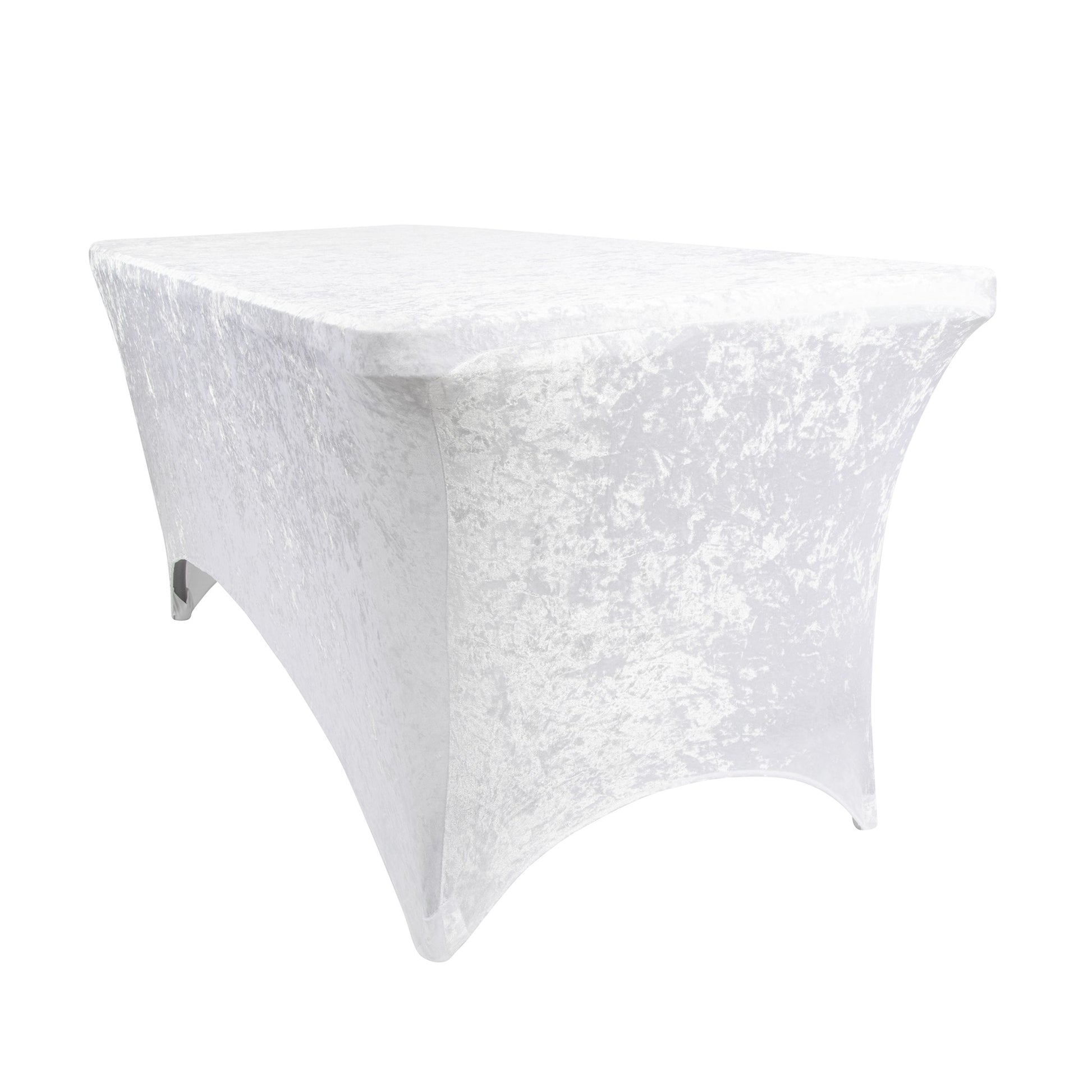 If you're looking for a trendy way to decorate buffet tables, our luxe Velvet Spandex Table Cover 6ft Rectangle - White is just the thing! Our velvet spandex table covers are made of the softest velvet and spandex to provide a luxurious feel and easy-to-use table covers for catering food tables, dessert tables, buffet tables, gift tables, and more!