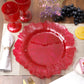 Transform your event into a vibrant and passionate affair with the premium Transparent Reef Plastic Charger Plate in Red. These textured, reef-inspired charger plates are more than just dining accessories; they're a statement piece for your table setting.