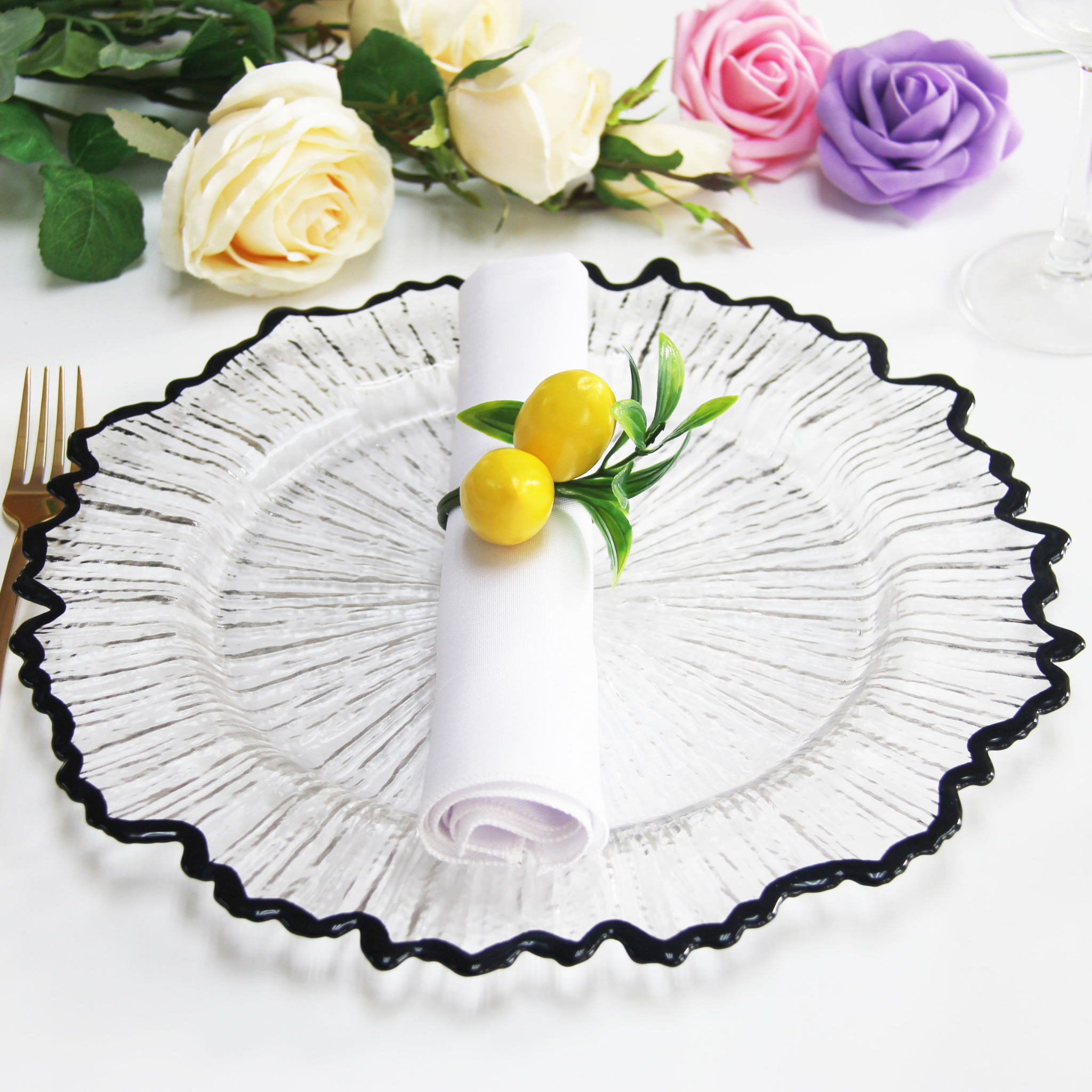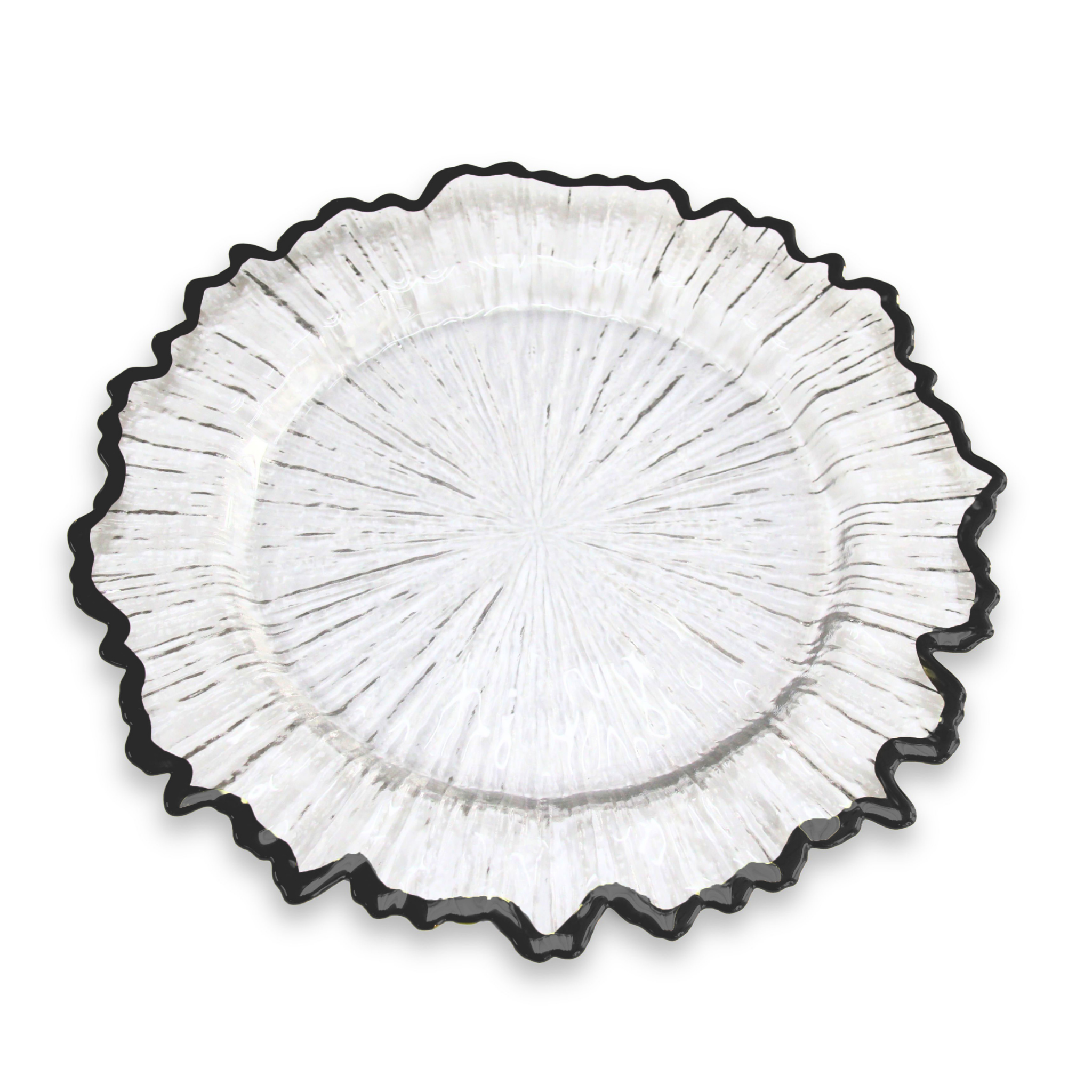 These Glass Reef Charger Plates with Black Trim give off an opulent vibe. Whether it's an intimate dinner party or a grand reception, these plates can turn a simple meal into a magnificent dining setting.