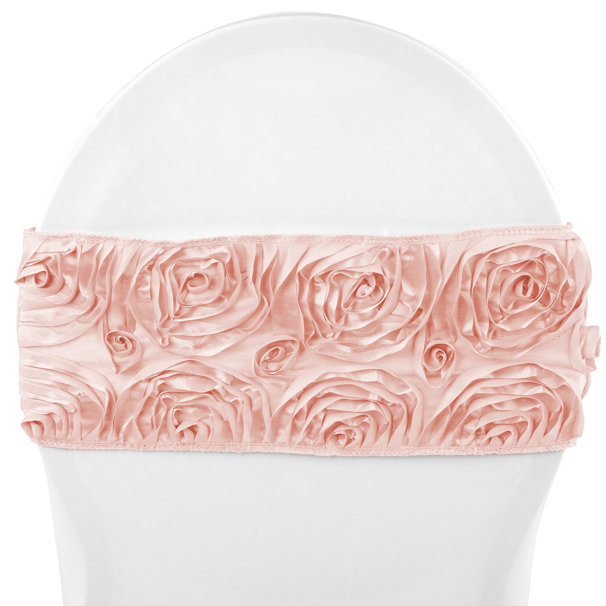 Throw a Chic Event with Rosette Spandex Chair Sash Band - Blush/Rose Gold