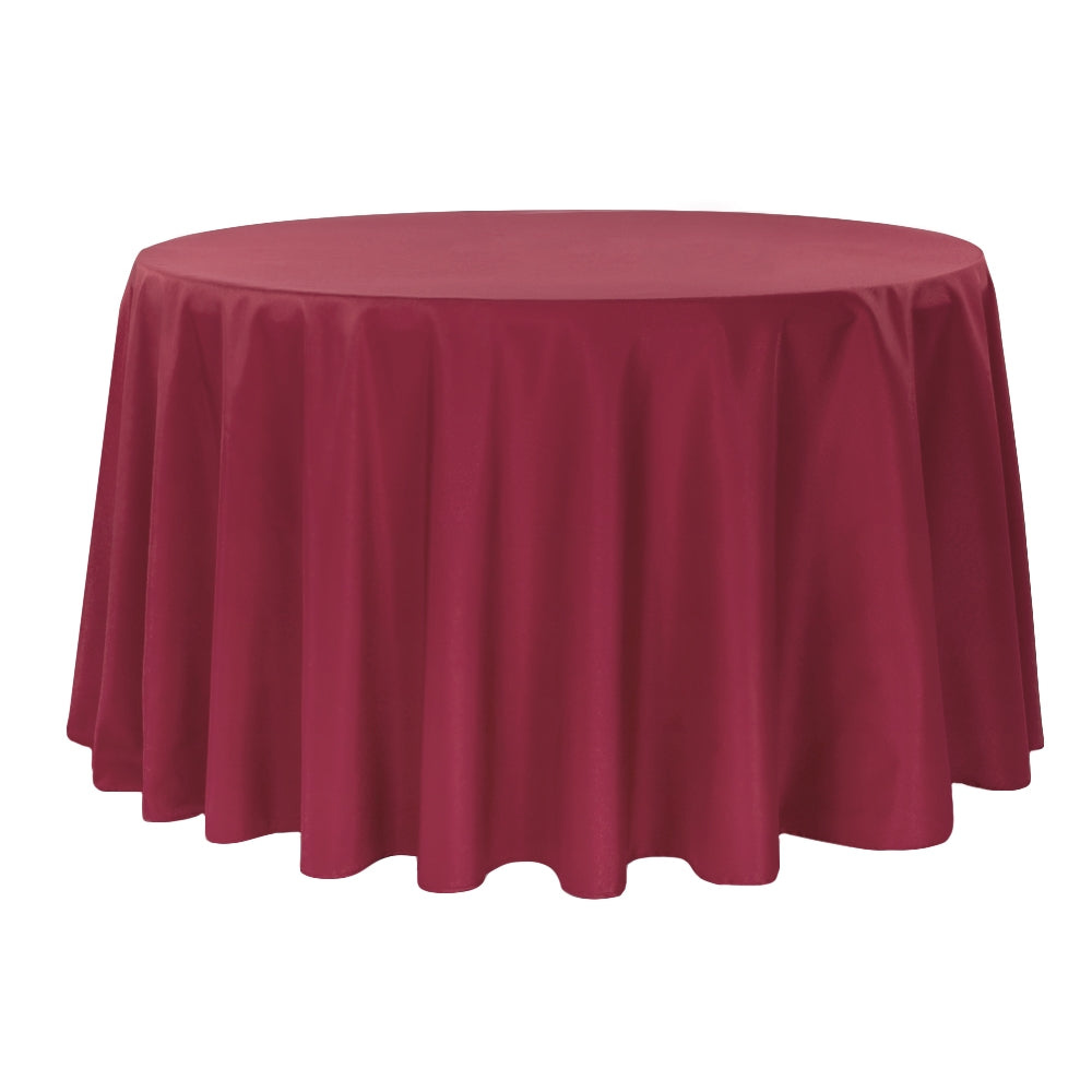 Our Burgundy 132" Round Polyester Tablecloth is unquestionably the best option to offer your table a very good appearance whether you're planning a wedding reception, business gathering, or family get-together. It is a versatile solution that can be used for any occasion. Moreover, it guarantees that your visitors will be delighted in a way they will remember because of its classic style and superior quality.