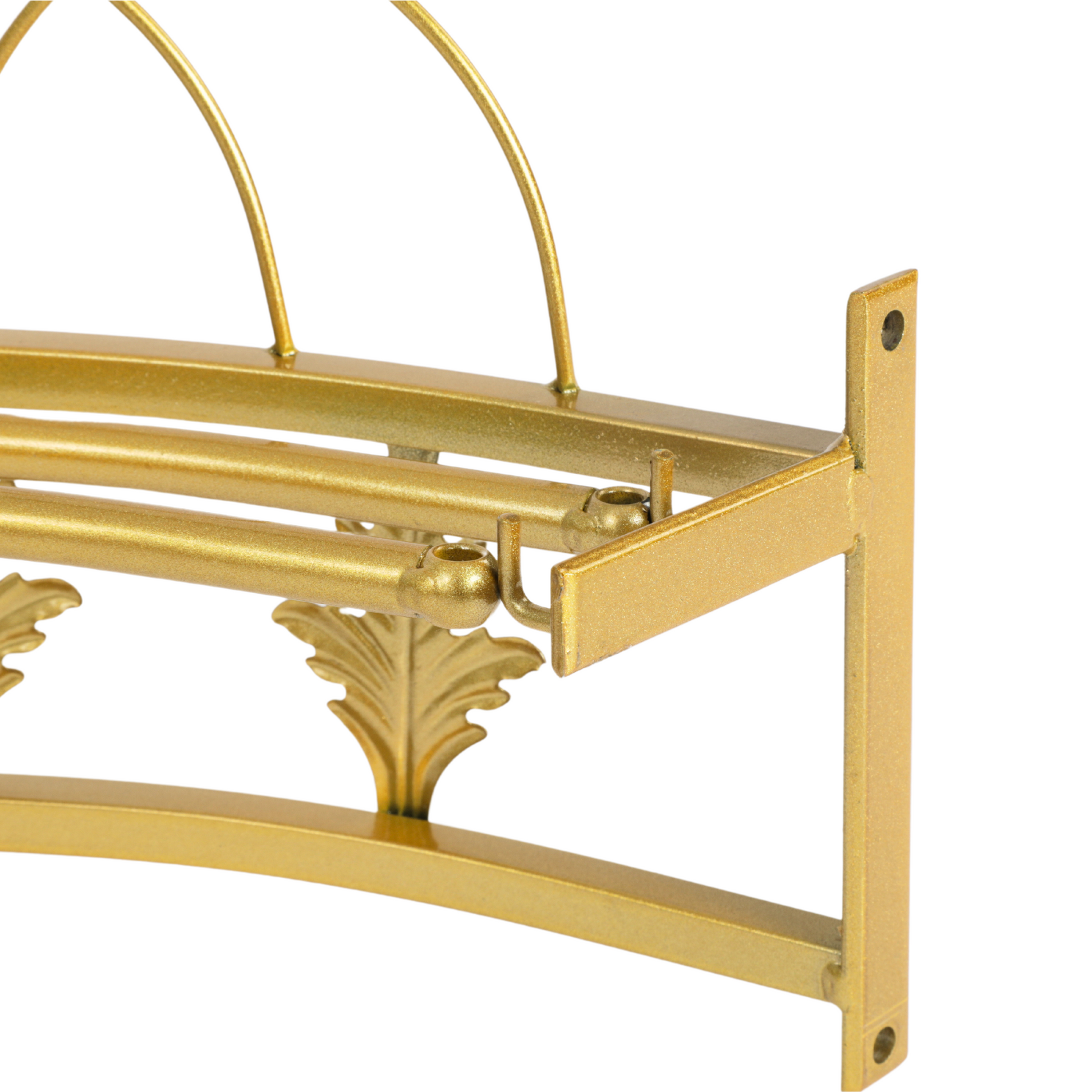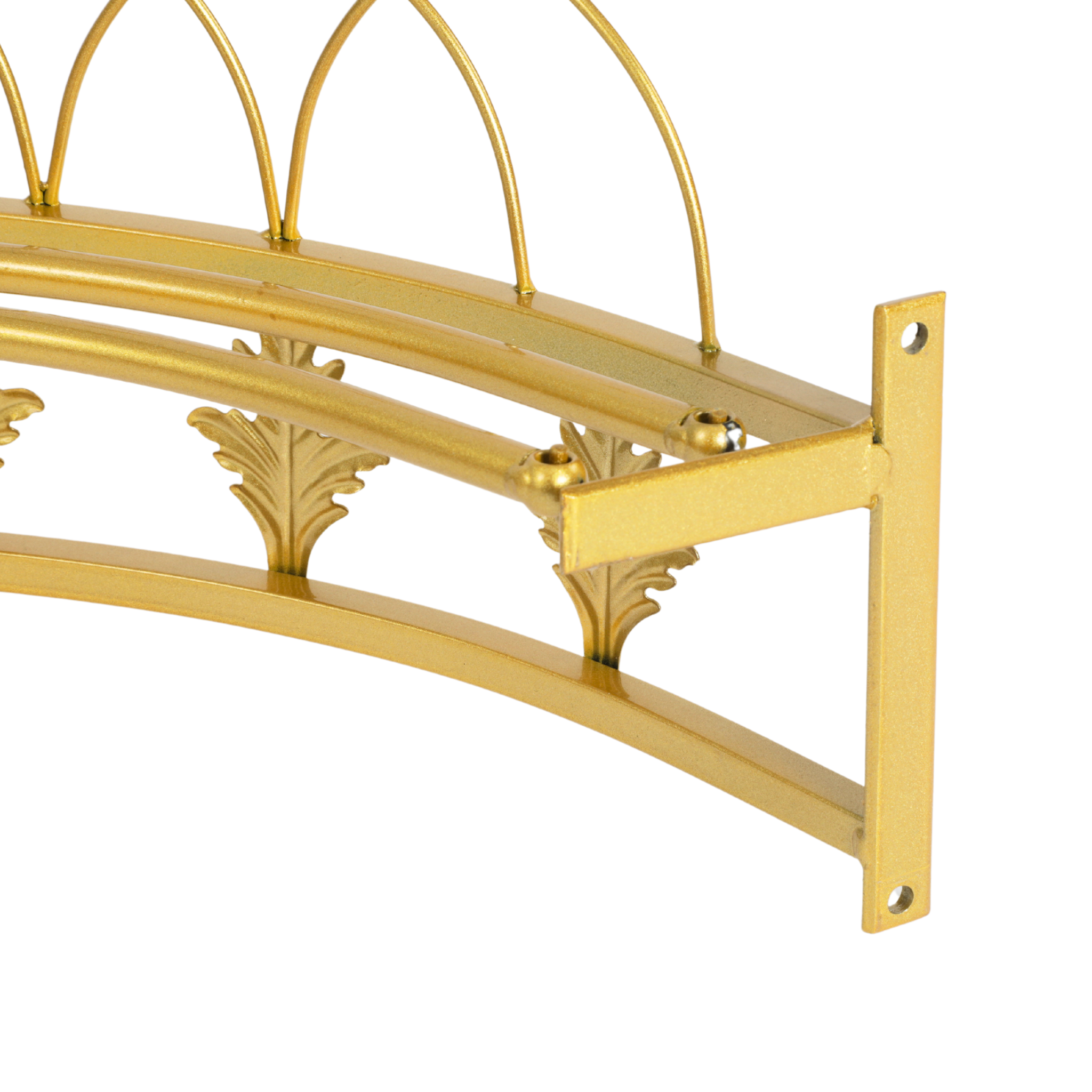 This crown wall decor, which is 6.5 inches tall, 3.125 inches wide, and 27.125 inches deep, looks well in a variety of settings and adds a dramatic presence. One crown, two ornamental hanging brackets, eight screws, and eight drywall support rods are all included in the kit, so you'll have all you need for a simple installation. This crown canopy is a real standout because of its exquisite finish and meticulous construction, which makes it ideal for embellishing any space or event venue.