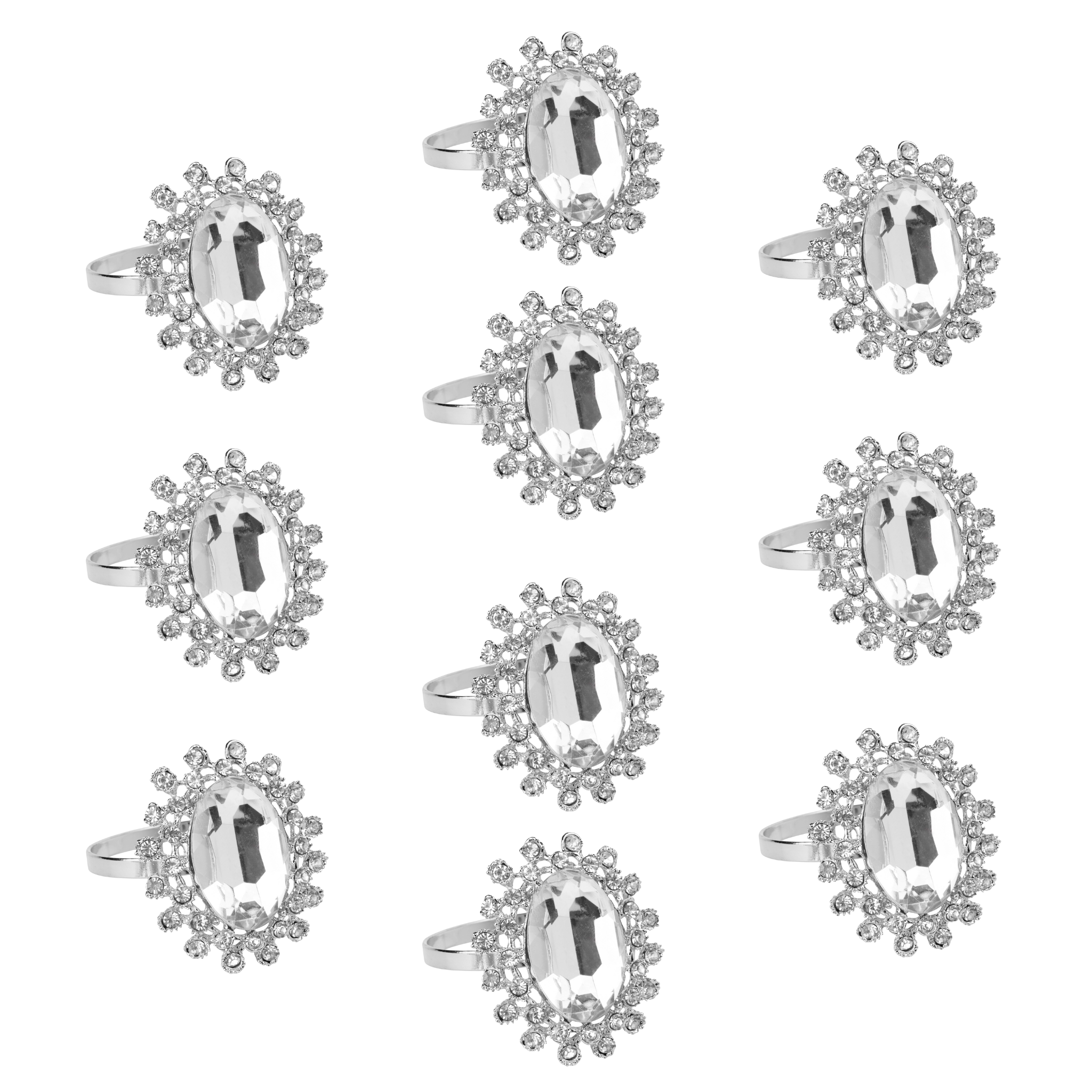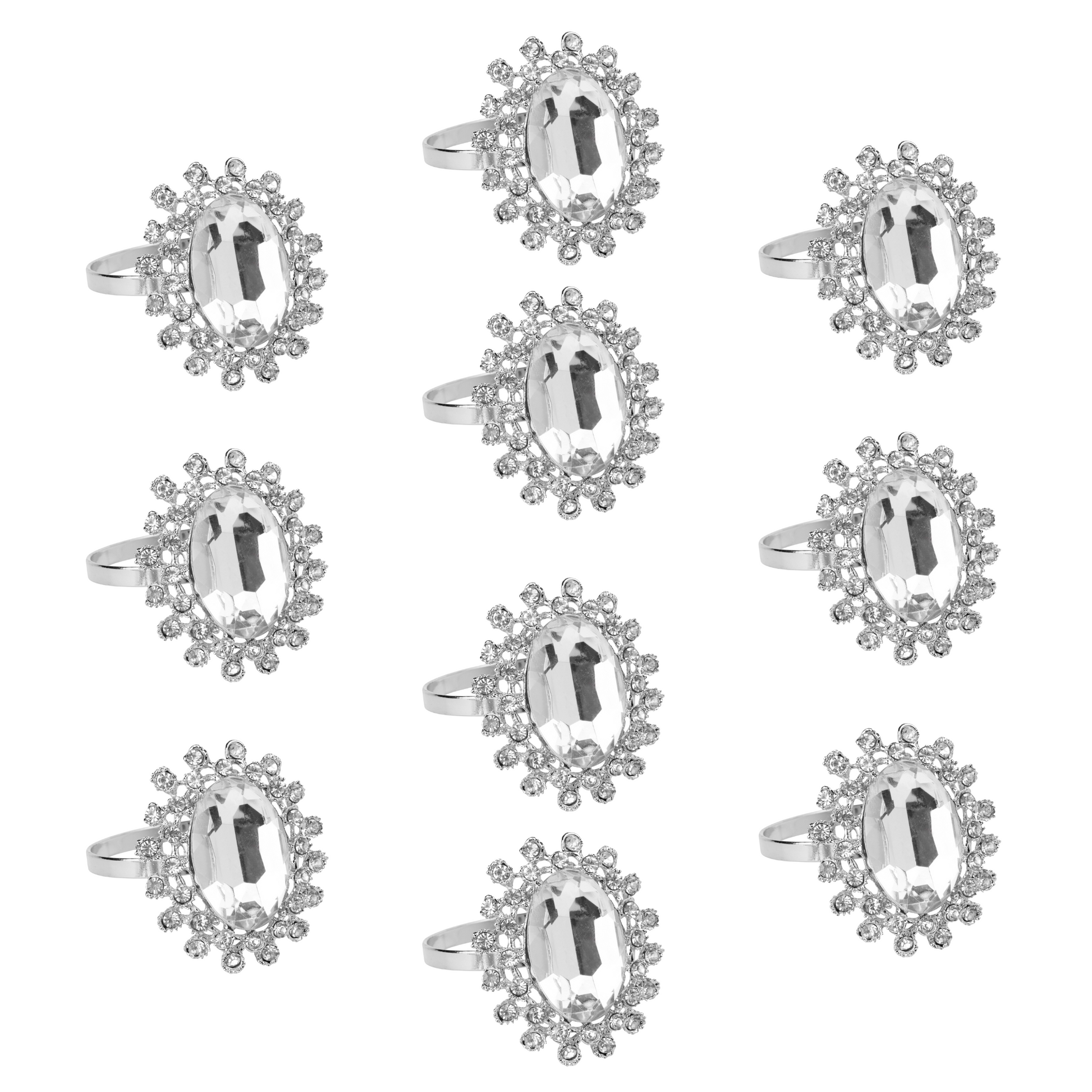 Bring on the bling while coordinating with your centerpieces with our always-sophisticated 10 pc/pk Royal Diamond Napkin Ring. These sparkling napkin ring holders come in three sensational color selections including rose gold, gold, and silver to complement your reception decor and theme. They feature a sparkling faux gem with facets sure to catch and reflect the light for a dazzling presentation. A glittering rhinestone solitaire adorns these enchanting napkin rings, helping you serve up the elegance with every dish. A luxe and glamorous touch, these glitzy napkin rings lend an opulent look to any setting or event. Say "yes" to these lovely engagement party and wedding decor accents and let the festivities begin!