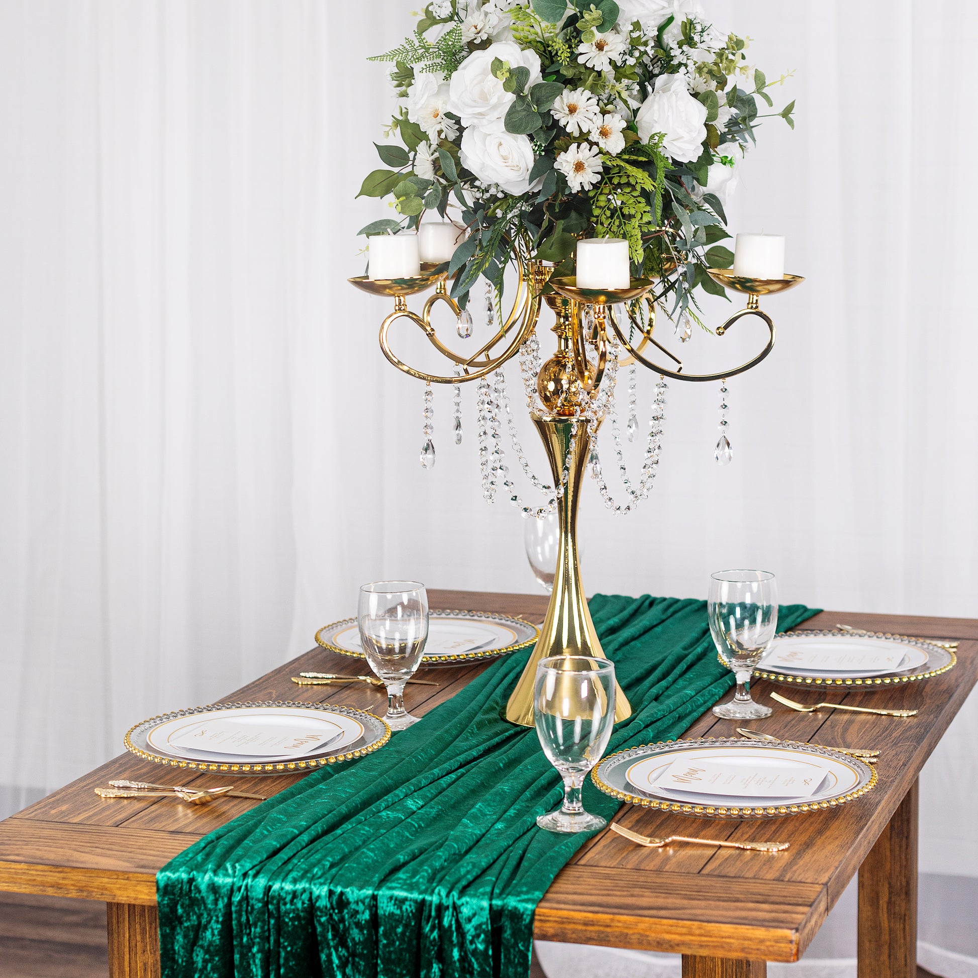 Add a touch of opulent beauty to your event tables and holiday dinner settings with this spectacular candelabra. A classic look lends this candle tree an upscale ambiance, with spectacular crystal drops that emit a dream-like sparkle and beautifully reflect the light. It makes a magnificent focal point for any occasion while setting a soothing mood for your dining comfort. The luxurious ambiance makes a perfect centerpiece for the home or your wedding reception tables. Give it a permanent place on your formal dining table or it in any variety of other decorative setups. It sparkles on a sideboard, tall bookcase, entry table, display case, or other elevated surfaces. Whether used indoors or out for your special events, this candelabra centerpiece draws attention to become the perfect conversation piece. Light up the festivities and enjoy a gorgeous candlelit dinner for two or two-hundred! This wholesale event centerpiece is a showstopper that can be used for all of your special occasions to bring timeless elegance and romantic lighting. The look and mood perfectly match with traditional and contemporary table settings alike.