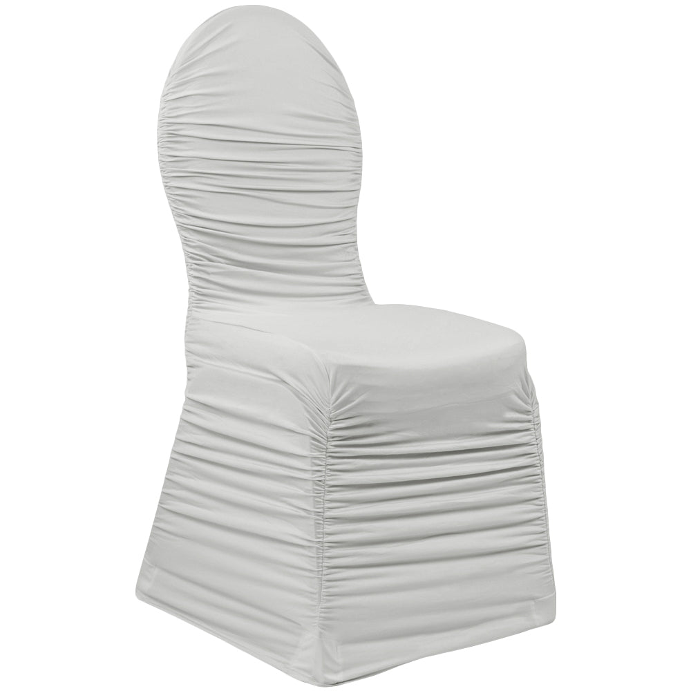Make your event a memorable one with extra glam. Our Ruched Fashion spandex banquet chair covers are fashionable, modern and chic with ruffled backing to give any wedding or special event a one of a kind elegance. Ruched Fashion spandex chair covers hug your chair snuggly to show the chairs shape. We offer the Spandex chair covers in many colors to fit your banquet chair to dress up your theme and help you create the look of your dreams.