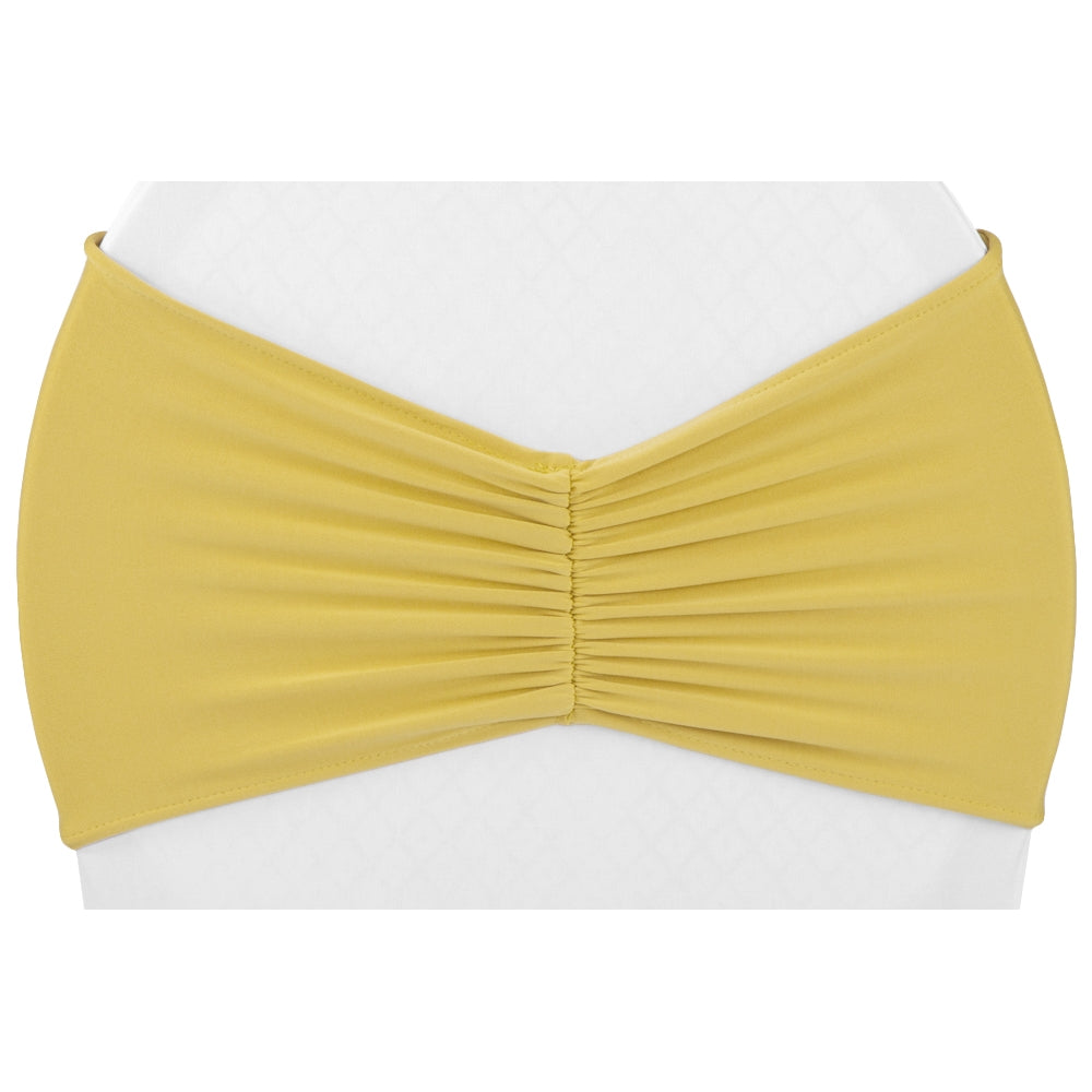 Add a touch of elegance to your seats to complete your table setup. Enhance your event with our Ruffled Spandex Chair Band - Gold to add an air of sophistication to your table setup.