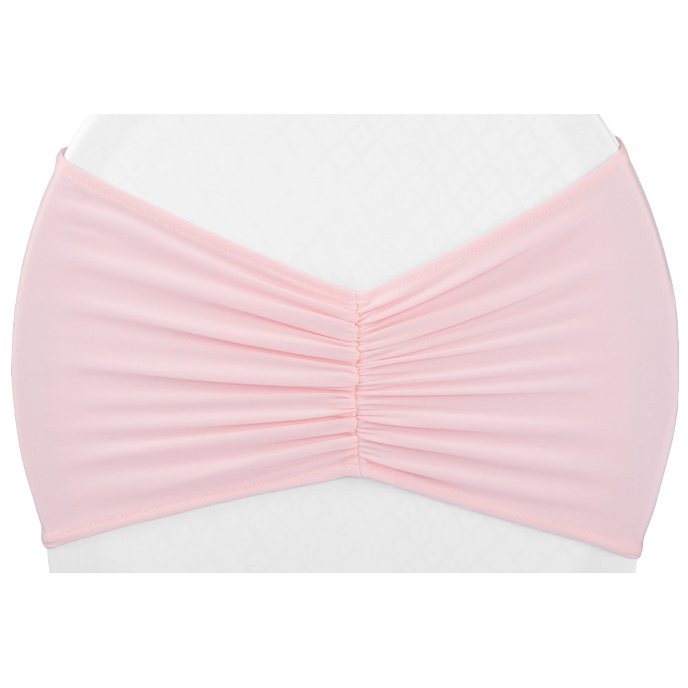 Additionally, the Pink Ruffled Spandex Chair Band with its stretchy material ensures a snug and sleek fit on various chair sizes and styles, providing a polished and cohesive look to your seating arrangement.