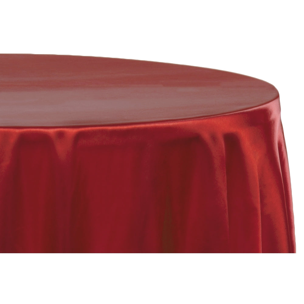 We craft our 108-inch round satin tablecloth from 100% polyester, spinning it to look and feel like satin. Made of high-quality fabrics, this tablecloth is seamless with a surged finished edge for a polished feel. The burgundy hue adds elegance to any space.