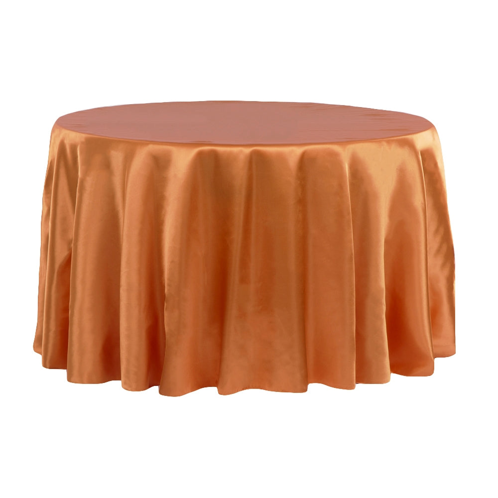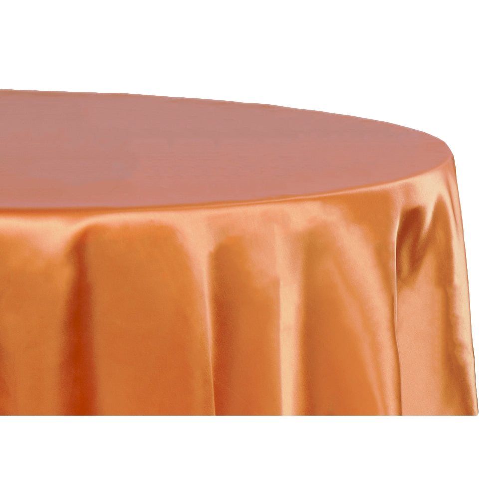 We craft our 108-inch round satin tablecloth from 100% polyester, spinning it to look and feel like satin. Made of high-quality fabrics, this tablecloth is seamless with a surged finished edge for a polished feel. The burnt orange hue adds elegance to any space.